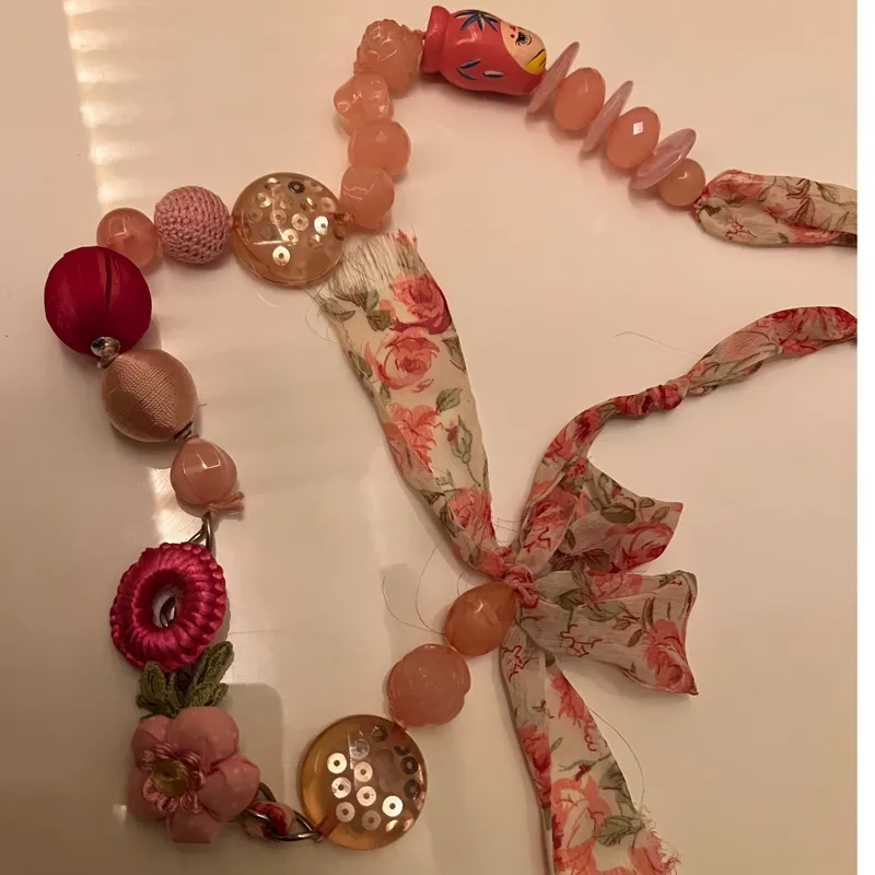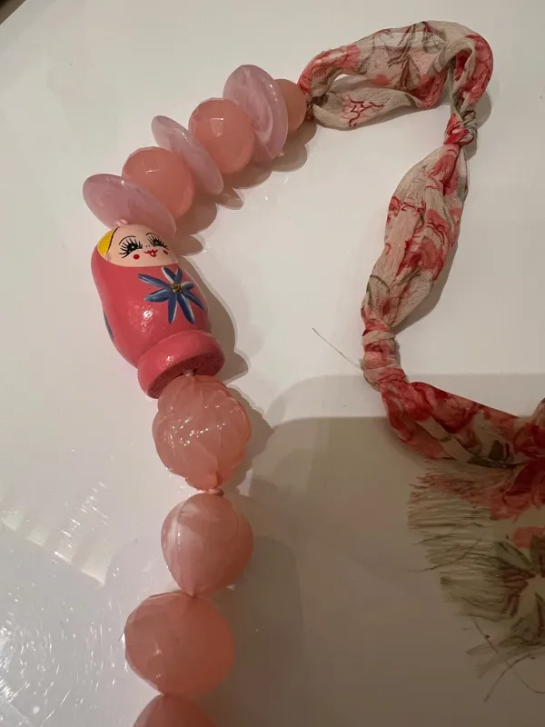 گردنبند چوب و حریر دست ساز