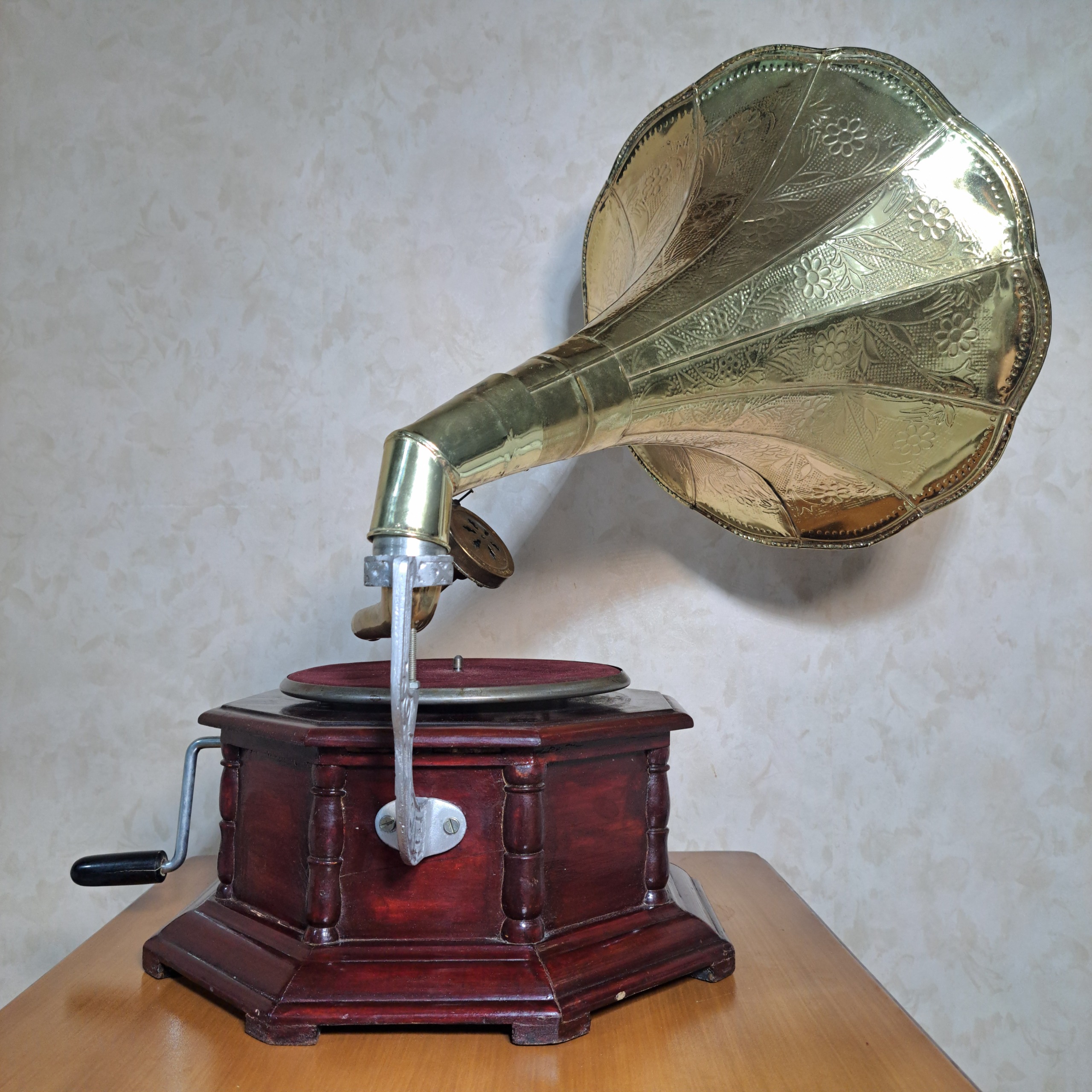 گرامافون هندلی قدیمی با موتور بزرگ انگلیس با قدمت 50 60 ساله (سلامت کامل) با دکوری بینظیر