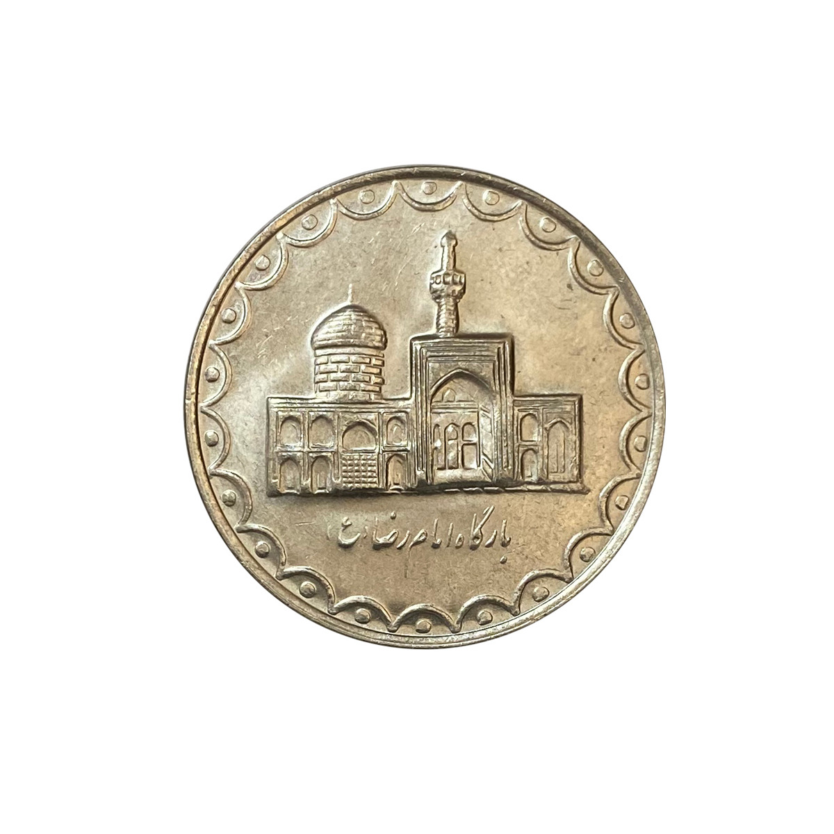 یک عدد سکه 10 تومنی بارگاهی، نیکل، ضرب 1379، زیبا و درخشان و دارای لعاب، نو و استفاده نشده عین تصویر، جنس این سکه ها نرم است و نو آنها هم معمولاً خط و خش ریز دارد