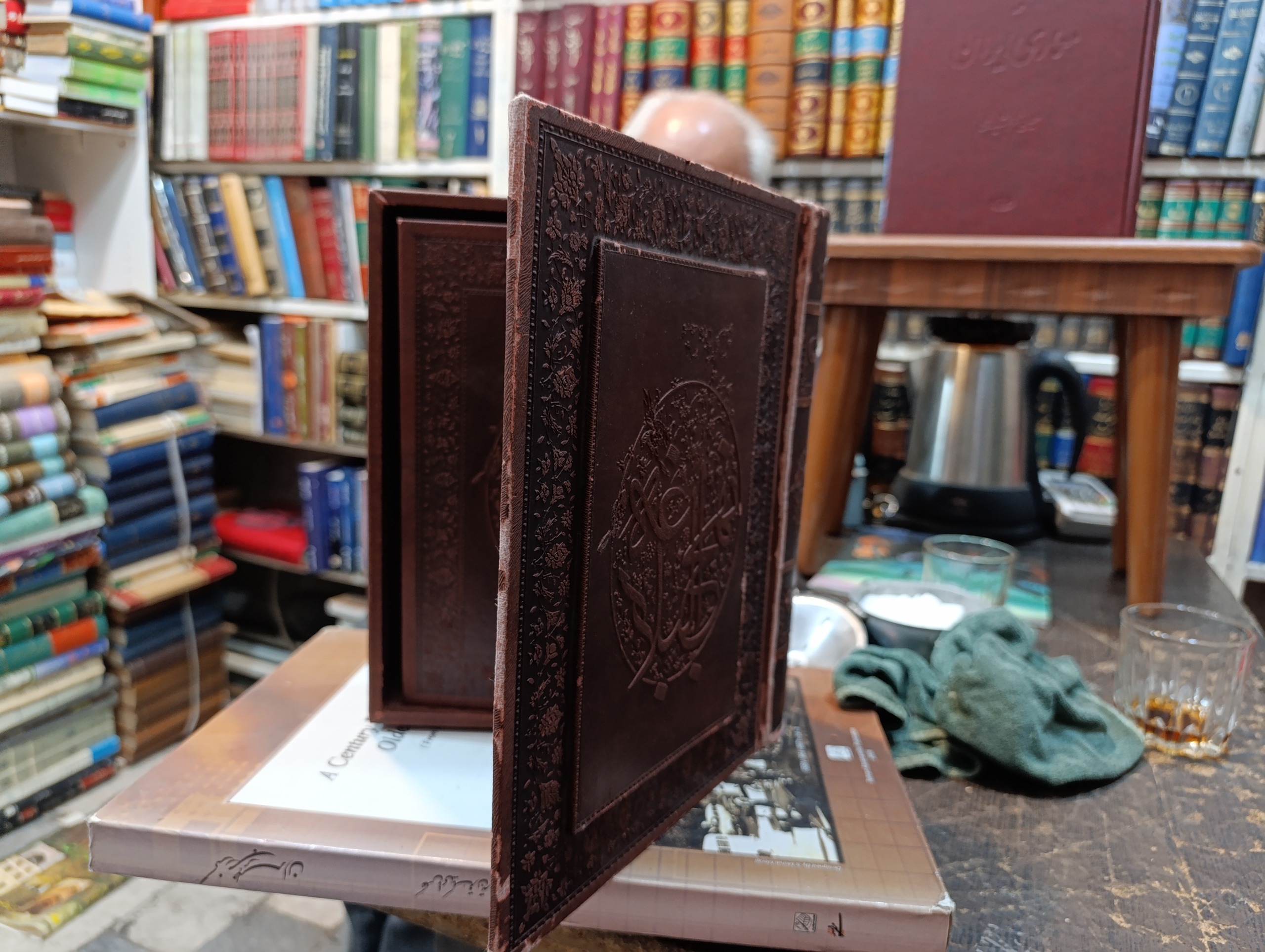 چاپ سال 1389 ، 752 صفحه ، چرم ، دارای جعبه «« معطر ، بسیار نفیس »