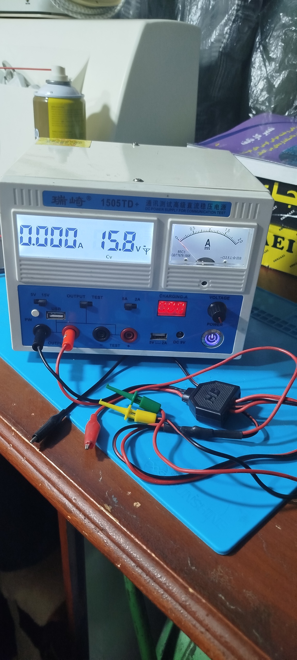 منبع تغذیه 15ولت 5 آمپر آنالوگ ودیجیتال با خروجی 9ولت و5 ولت ثابت و ولت متر ومحافظ جریان مستقیم بهمراه کابل برق وپراب