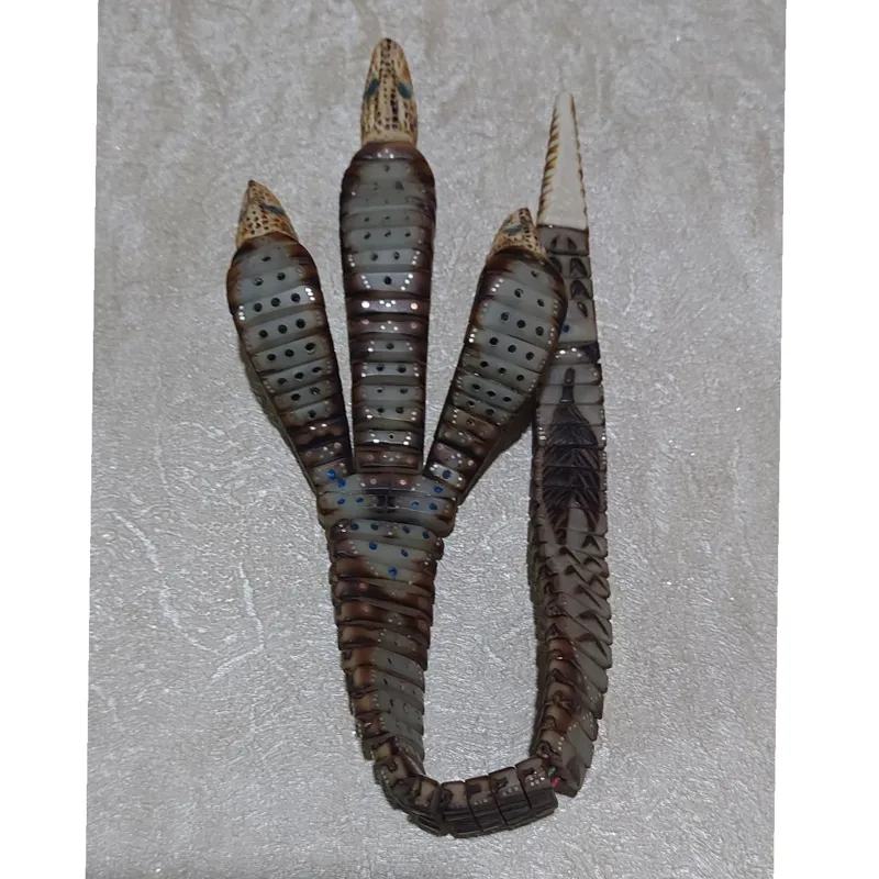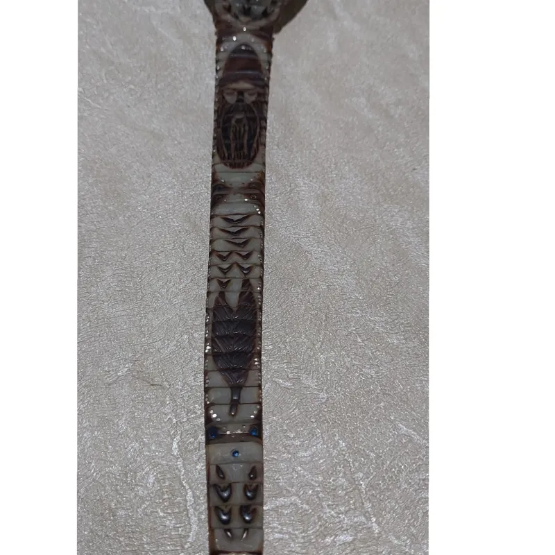 تسبیح بسیار زیبا طبیعی از استخوان و هسته خرما میخ کوبی منجوق کوبی تصویر دار صورت درویش سر و دم مارها استخوان هست با جزئیات خیلی زیبا طول کار نزدیک 36 تا 37سانت هست کار کلکسیونی وتک با توجه به تصاویر و توضیحات خرید فرمایید کار به صورت کلکسیونی فروخته میشود. تعداد دانه ها و تاریخ رو توجه نکنید برای پر کردن توضیحات زدم