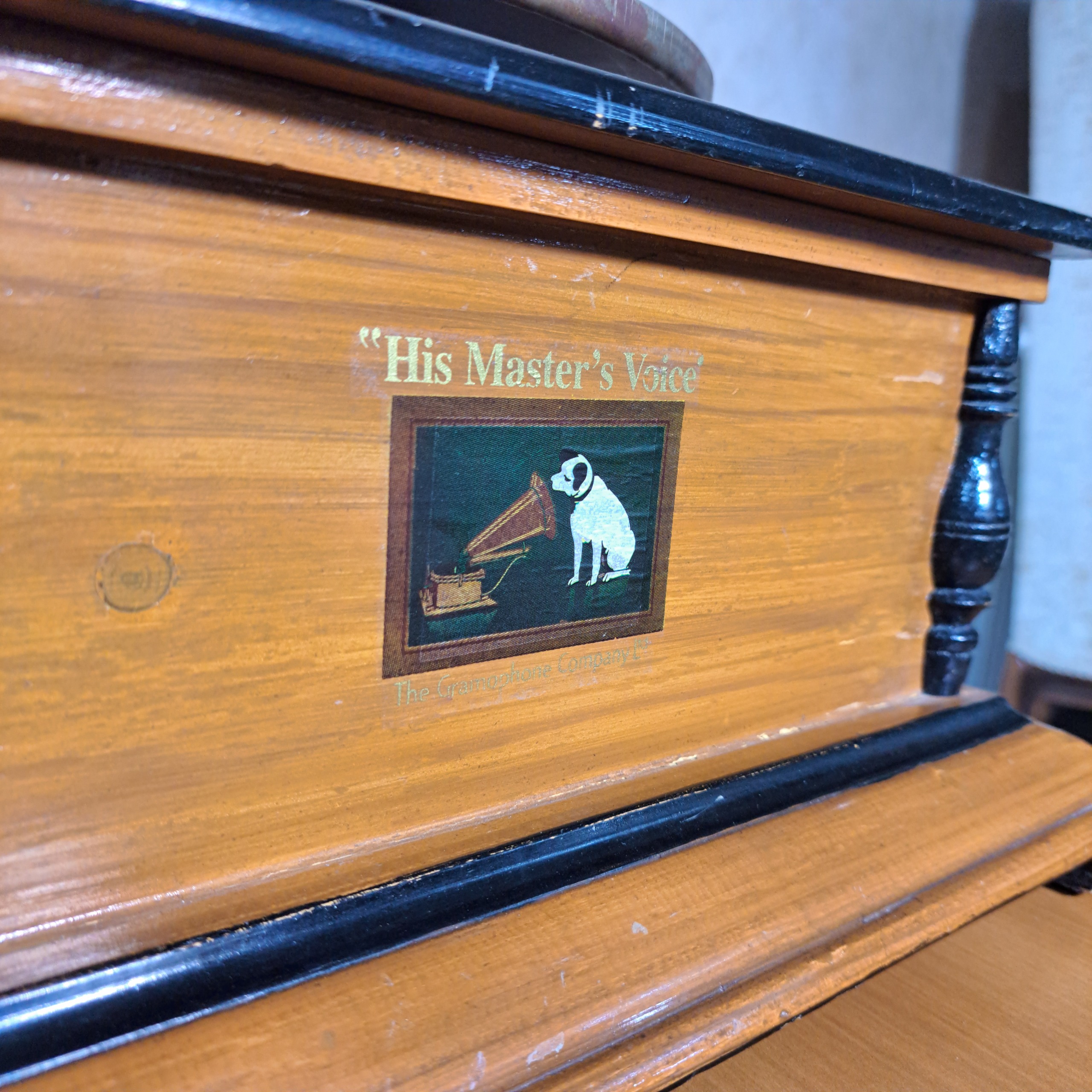 گرامافون هندلی قدیمی با موتور بزرگ انگلیس با قدمت 50 60 ساله (سلامت کامل) با دکوری بینظیر