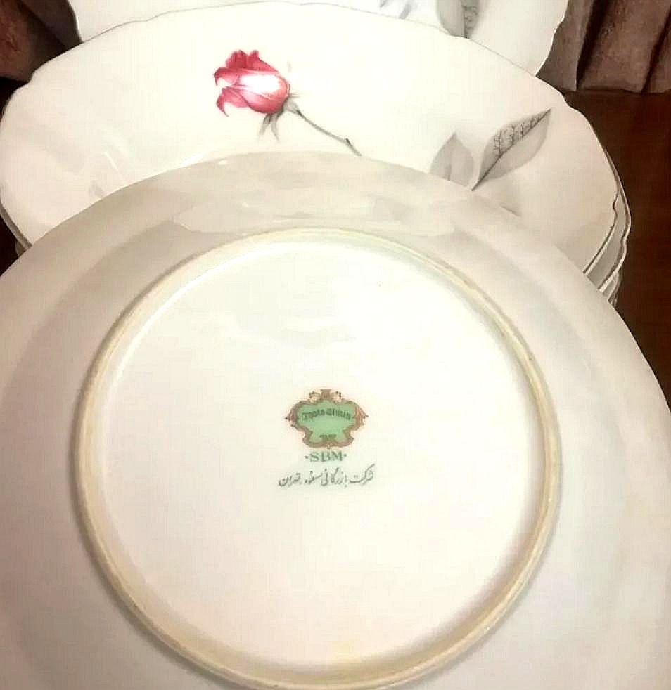 یکدست (6عدد) بشقاب خورش خوری 23 سانت بسیار زیبای گل رز تک شاخه، شاهکاری بی تکرار از چینی درباری بازرگانی مسعود. کاملا سالم ودرحدنو نگهداری شده اند، قیمت برای 6عددبشقاب باهم و یکجا میباشد.