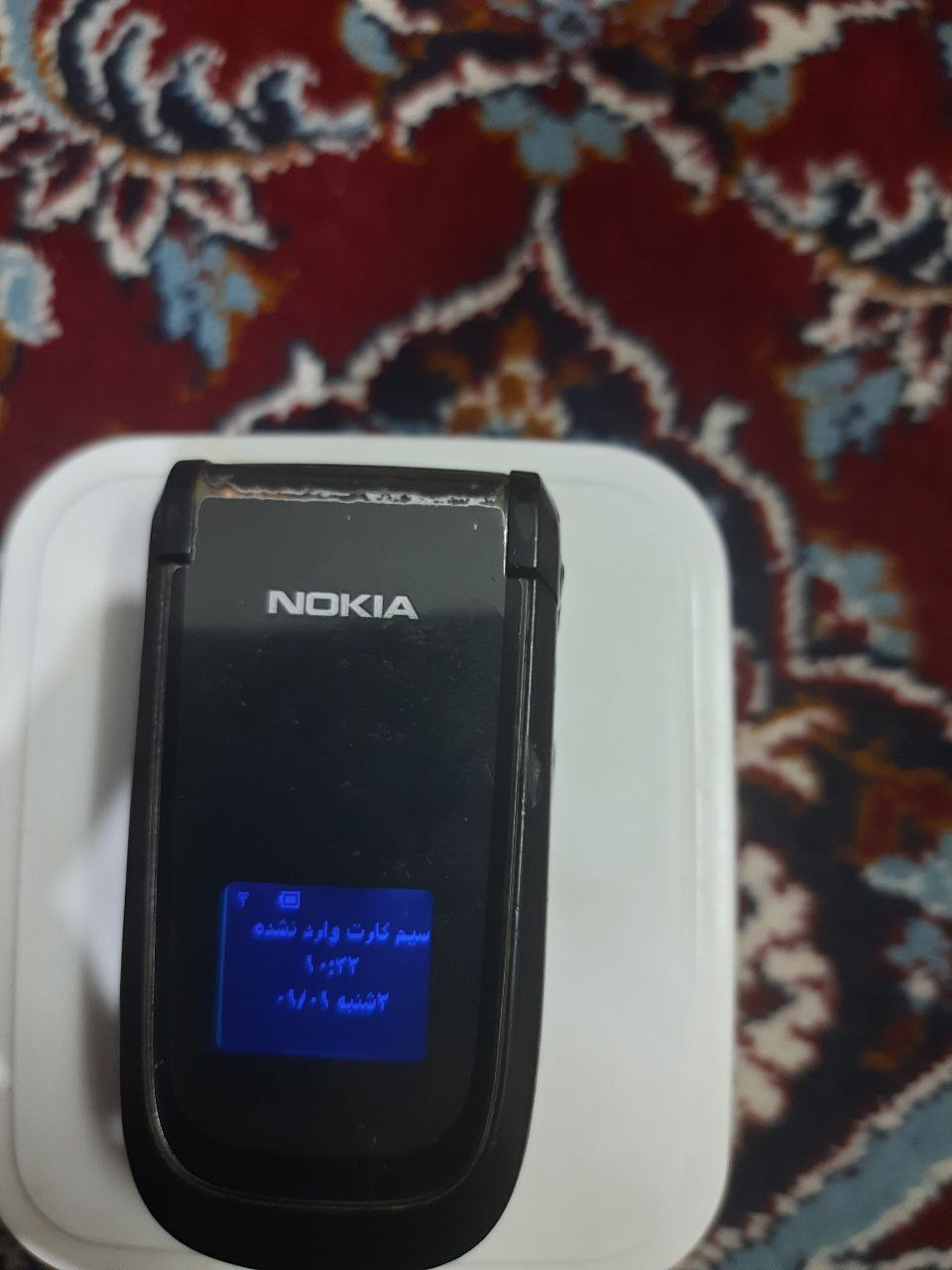 گوشی نوکیا تاشو 2660سالم قابل استفاده>کارتون ندارد<باتری سالم>سمت راست قاب گوشی ترک دارد با چسب پر شده<شارژر دارد.