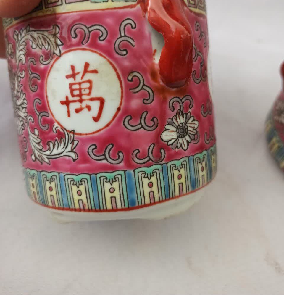 جفت چایدان کهنه پهلوی نقاشیهای برجسته دارد