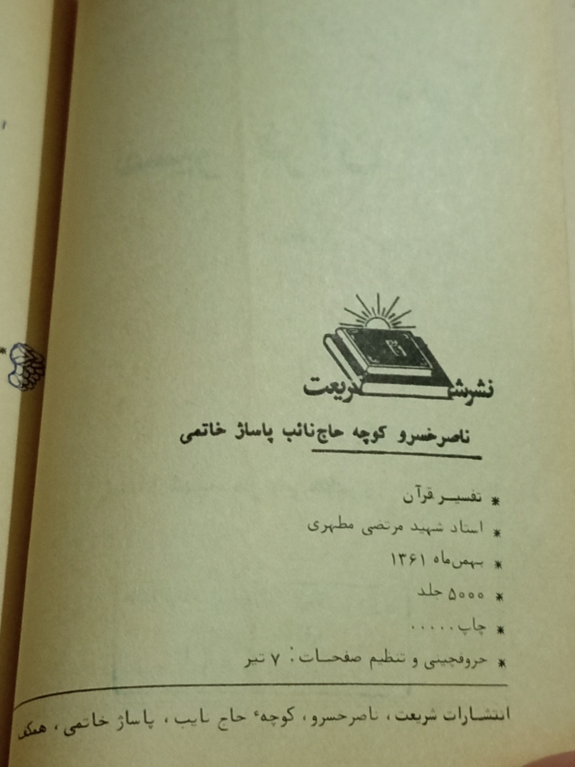 کتاب تفسیر قران اثر مراضی مطهری قدیمی