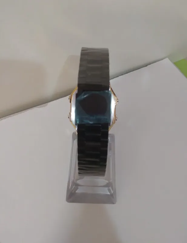 ساعت casio مدل جدید و جذاب a178w دارای بند استیل مشکی و بدنه طلایی و نیز صفحه نمایش تمام مشکی جذاب  بسیار خاص و منحصربه فرد دارای امکانات :