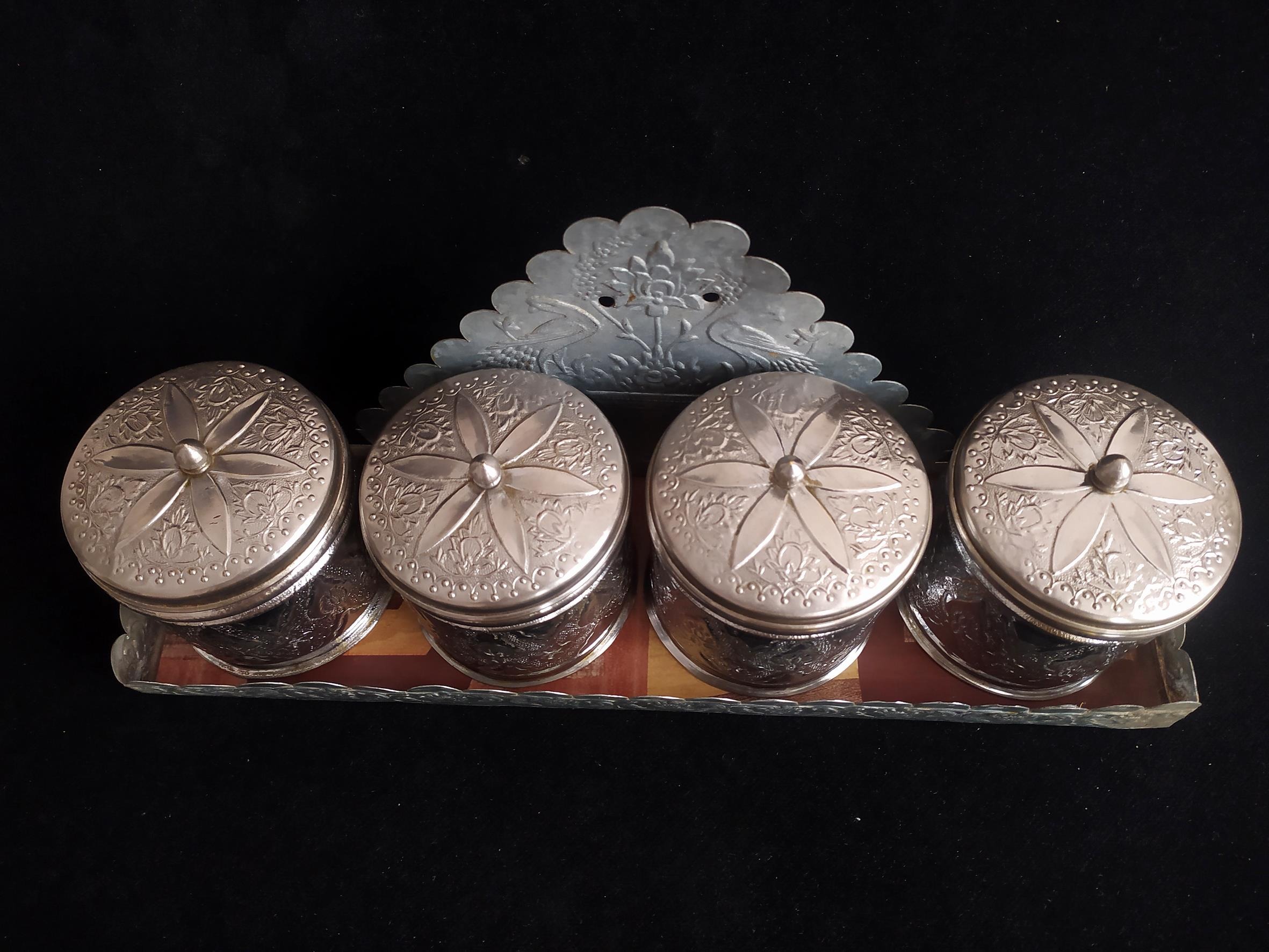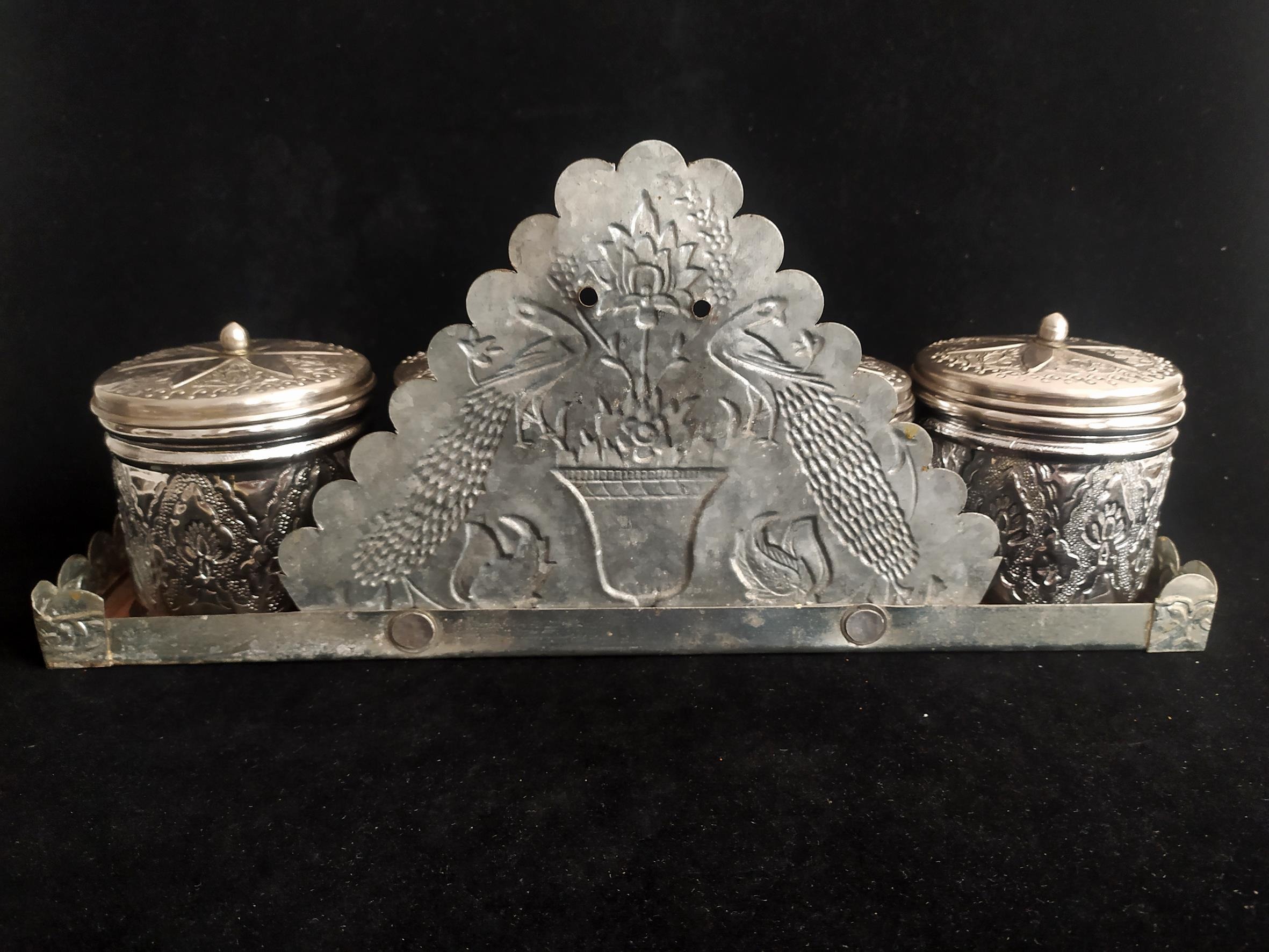 ست پاسماوری یا ادویه برنجی کهنه قلمکاری (کد47156)