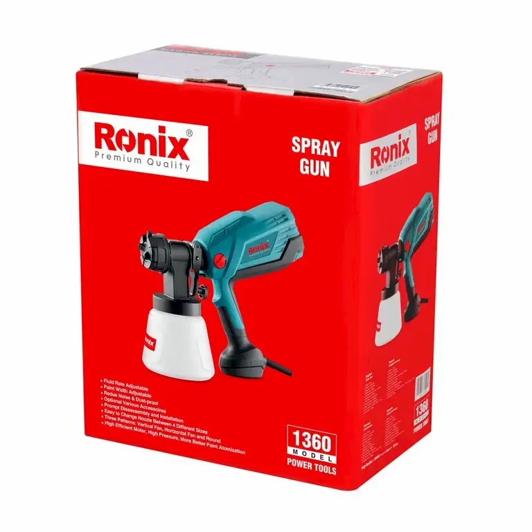 پیستوله برقی 1360 رونیکس، مجهز به موتور قدرتمند 600 وات است؛ از سیستم رنگپاشی HVLP بهره میبرد و برای نقاشی حرفهای و خانگی استفاده میشود. سهولت کاربرد و کیفیت عملکرد این پیستوله، آن را به انتخاب پرطرفداری در میان نقاشان حرفهای تبدیل کرده است. پیستوله
