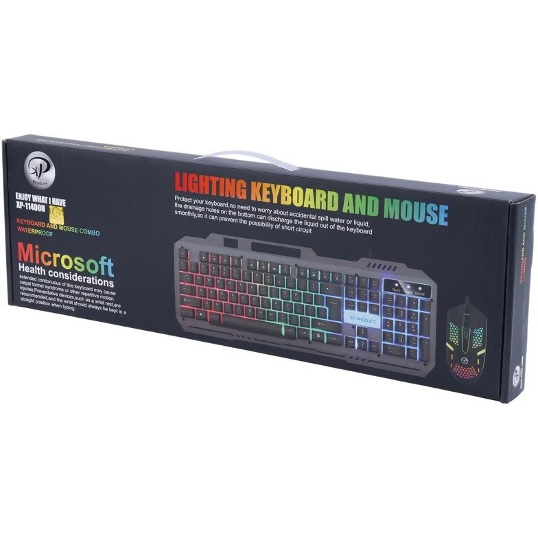 ست گیمینگ XP Product مدل XP-11400 شامل یک کیبورد و یک ماوس گیمینگ با طراحی جذاب و نورپردازی RGB است. کیبورد دارای کلیدهای نرم و مقاوم، با پشتیبانی از Anti-Ghosting برای فشردن همزمان چند کلید است و ماوس با حسگر اپتیکال دقیق و قابلیت تنظیم DPI، کنترل بینقصی را در بازیها فراهم میکند. این ست با طراحی ارگونومیک و متریال باکیفیت، برای استفاده طولانیمدت مناسب است. قیمت اقتصادی در کنار ویژگیهای حرفهای، XP-11400 را به گزینهای محبوب در بین گیمرهای مبتدی تا نیمهحرفهای تبدیل کرده است.
