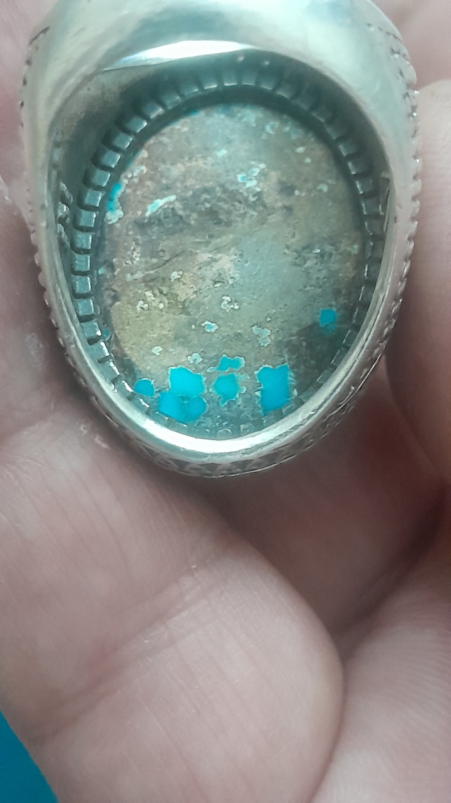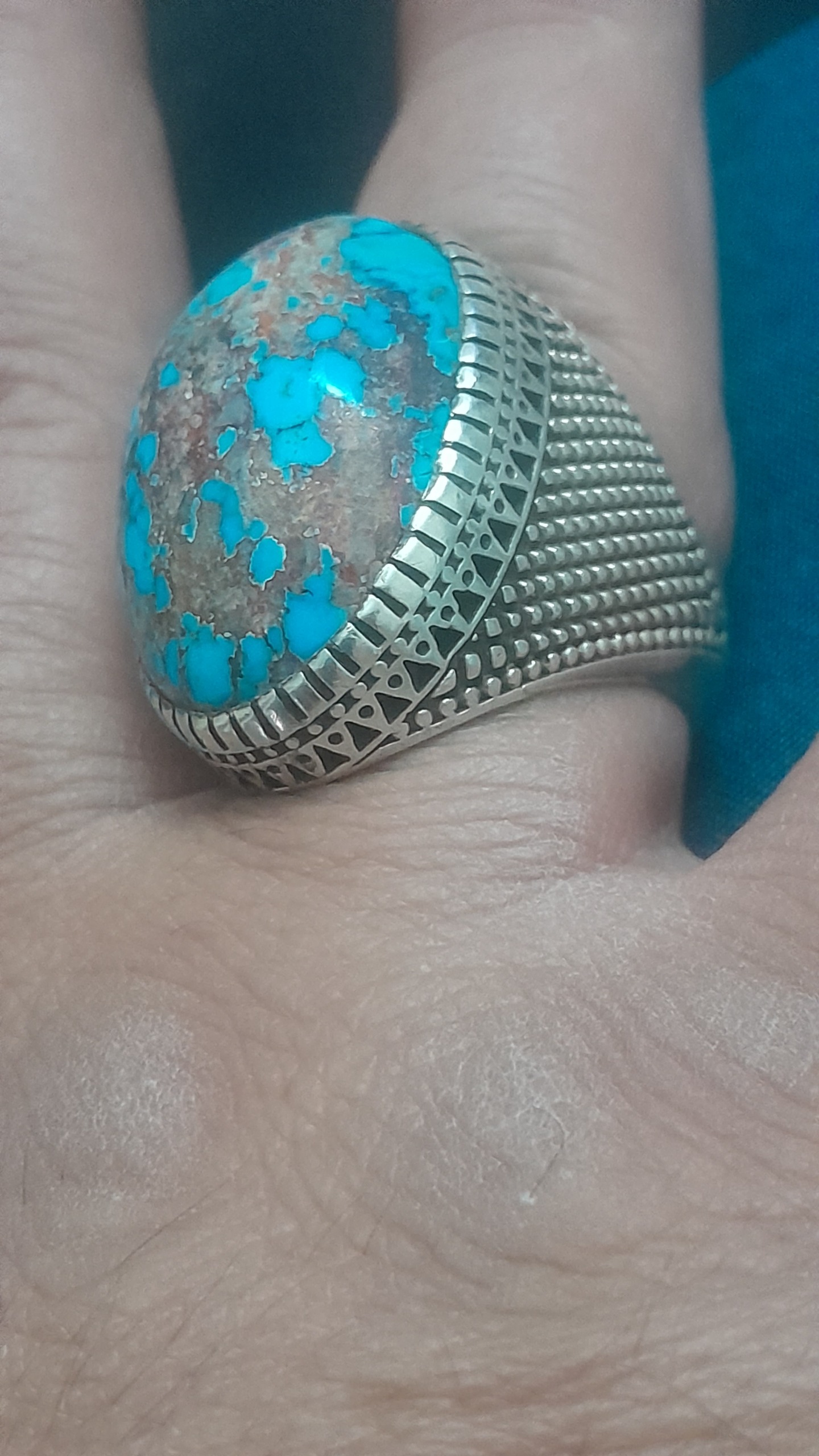انگشتر نقره عیار 925 با نگین فیروزه درشت شجری یه پرداخت بخوره پول سنگش 3تا4میلیونه وزنش24گرمه حدودا