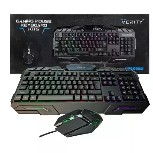 کیبورد و ماوس وریتی مدل KB6126GCW یک ست کیبورد و ماوس گیمینگ بوده و برای افرادی که طرفدار بازی های کامپیوتری هستند، بسیار مناسب است. اتصال آن به صورت سیمی و از طریق کابل USB است. کیبورد این مجموعه دارای 114 عدد کلید با حروف فارسی بوده و وجود بک لایت یکی از ویژگی های متمایز آن است. ماوس همراه این کیبورد دارای 6 عدد کلید اصلی، حسگر اپتیکال، و محدوده دقت 2400dpi است . کلیدهای کیبورد وریتی مدل KB6126GCW برجسته هستند و برای بازی و تایپ گزینه مناسبی است، همچنین پس از 10 دقیقه استفاده نکردن، به حالت استند بای می رود. رنگ های ماوس در این نسخه ترکیبی بوده ، همچنین کیبورد دارای کلید روشن/خاموش کردن نور RGB می باشد . کلید های کیبورد داری قوس می باشند که زیبایی خاصی به کیبورد داده است و سرعت تایپ کردن را افزایش می دهند . طول سیم ماوس 1.5 متر می باشد . به طور کلی علاوه بر قابلیت گیمینگ می تواند در ادارات ، کافی نت ها ، دفاتر پیشخوان و مدارس با توجه به ابعاد و قیمت گزینه مناسب تری باشد .