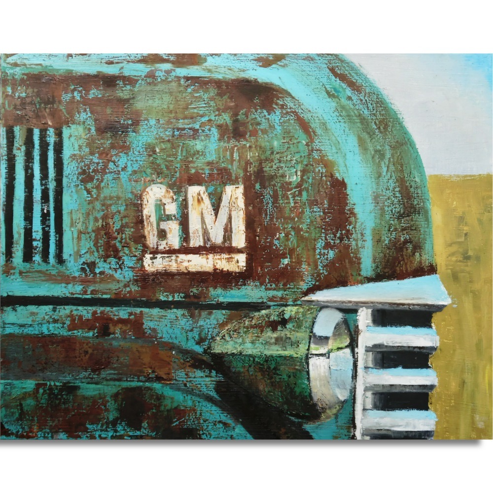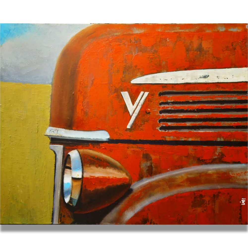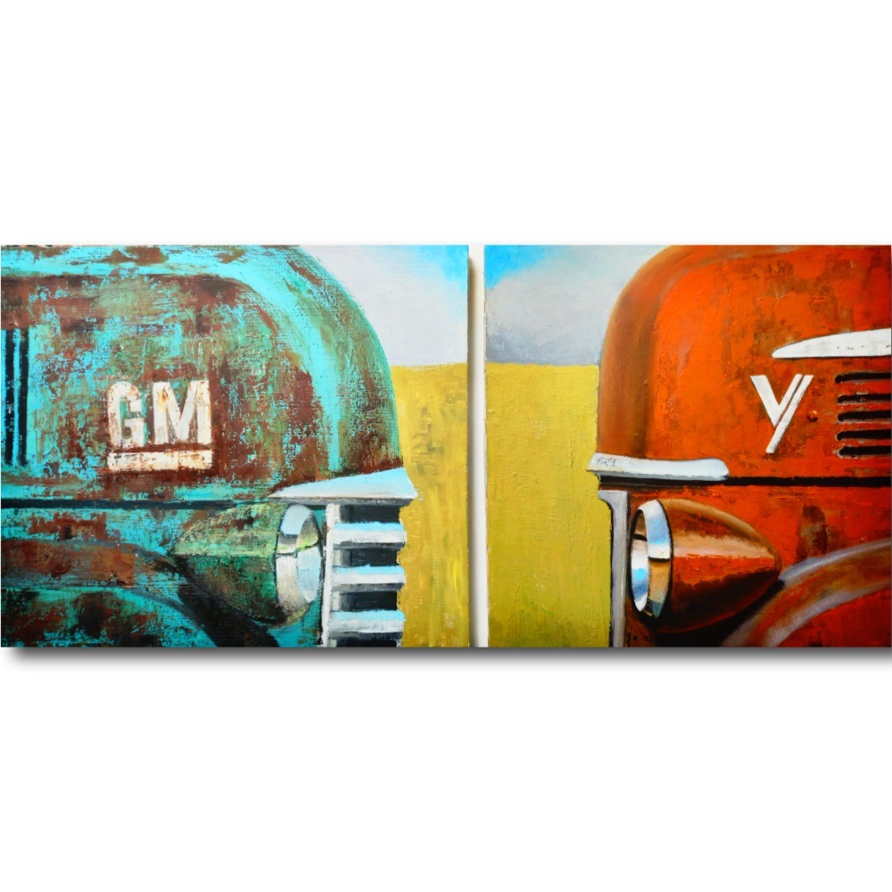 دو تابلو نقاشی رنگ روغن با موضوع کامیونت قدیمی و کلاسیک آمریکایی فورد و ژنرال موتورز