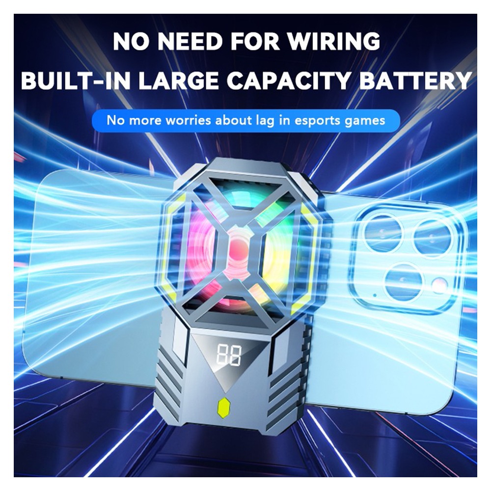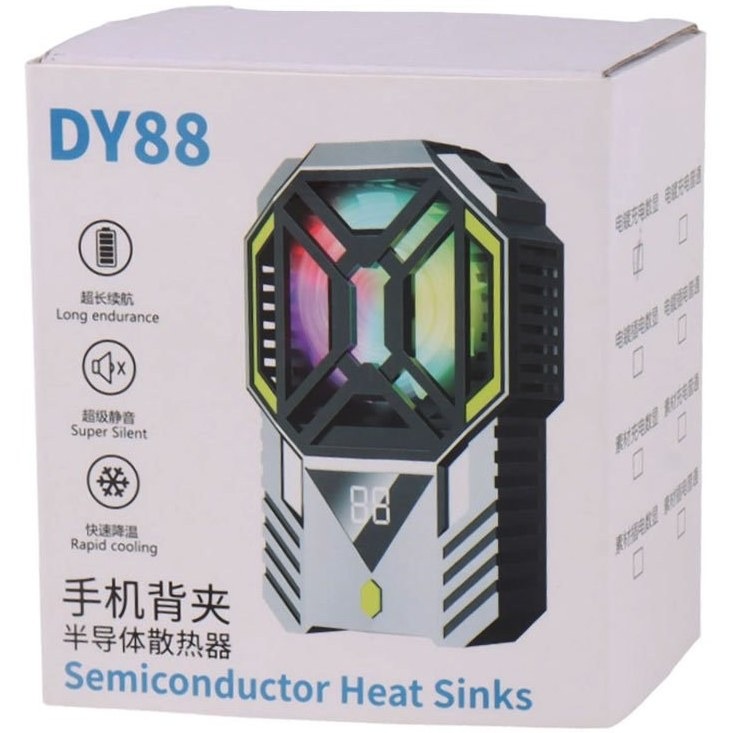 فن خنک کننده موبایل مدل DY88 یک فن خنک کننده رادیاتوری تمام عیار است که به سرعت دمای گوشی را پایین میاورد و دارای باتری داخلی و نمایشگر دما نیز می باشد. این فن دارای 2 حالت چرخش فن و نورپرداز RGB جذاب نیز می باشد.