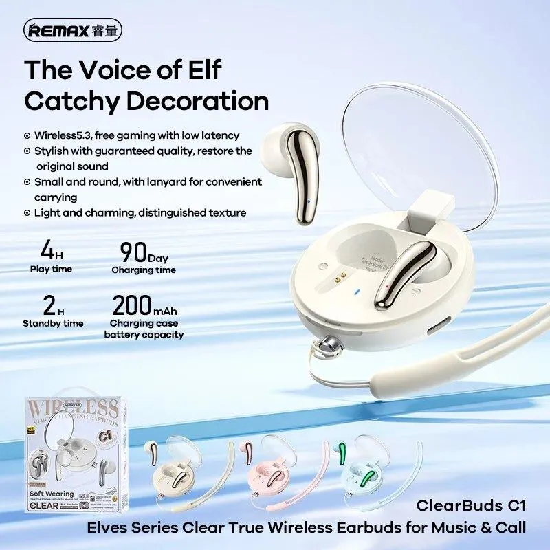 هندزفری بلوتوث ریمکس اورجینال مدل ClearBuds-C1 TWS یک مدل هدفون بیسیم است که با استفاده از فناوری بلوتوث، برای ارتباط با دستگاههای دیجیتالی مانند تلفن همراه، تبلت و لپ تاپ طراحی شده است. این