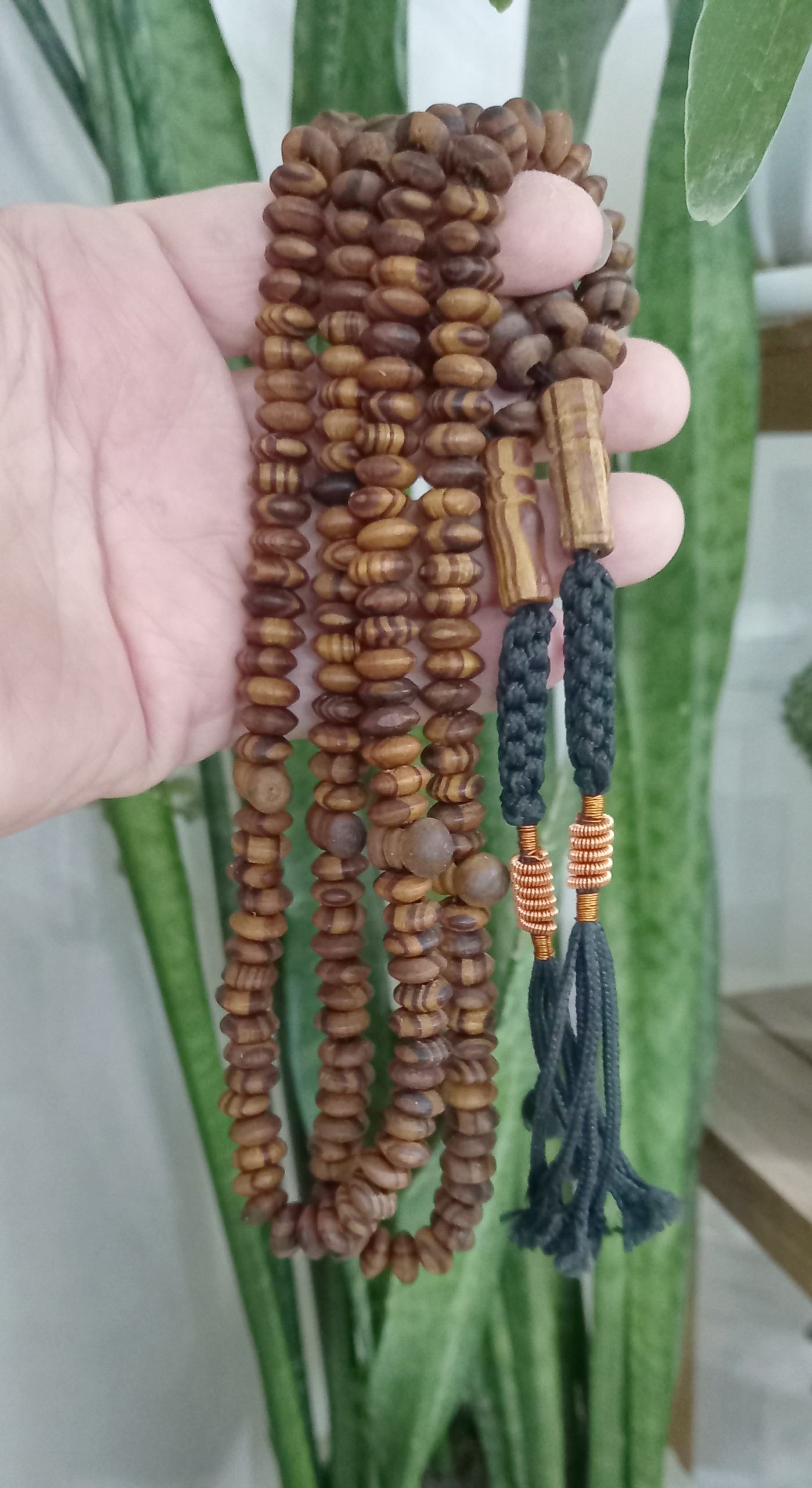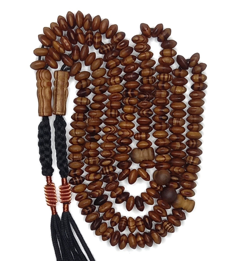 تسبیح چوبی عدسی 101 دانه زیبا ، سبک و اقتصادی و یک تسبیح همراه .