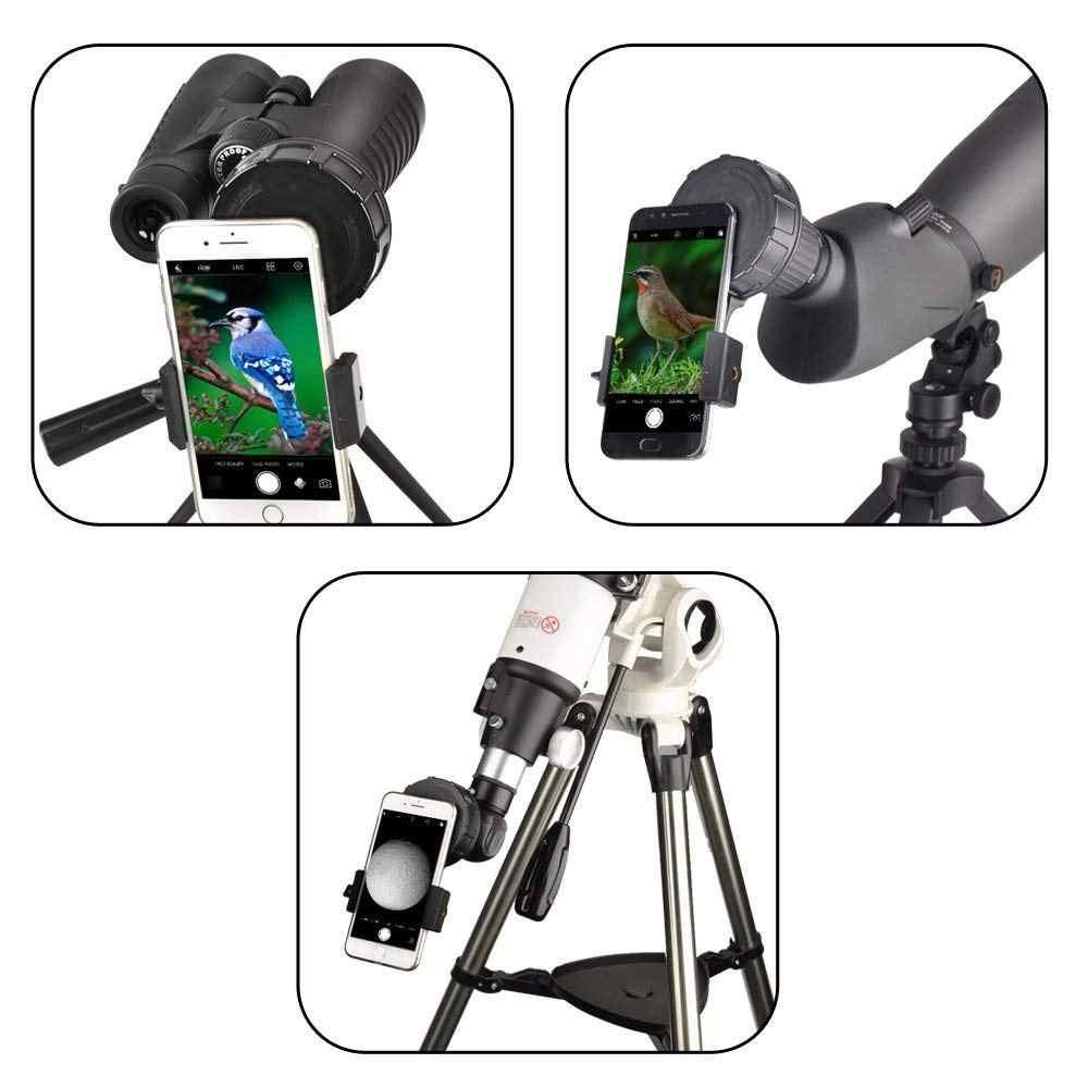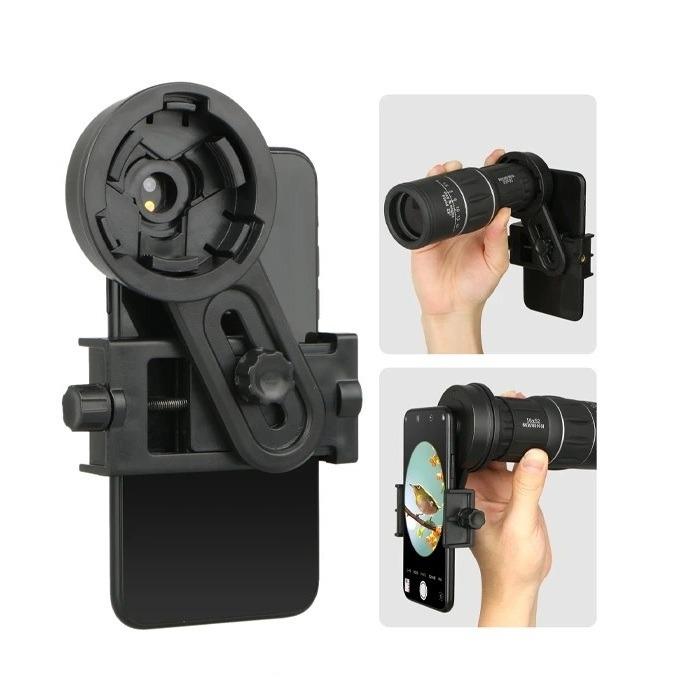 ابزاری بسیار عالی برای تبدیل تلفن همراه به دوربین فیلمبرداری و ضبط تصویر در دنیای دور و کوچک است. رابط تلفن همراه یک براکت ثابت از میکروسکوپ و تلسکوپ است ، به راحتی می توان آن را به چشمی میکروسکوپ نزدیک کرد به طوری که مناظر با مسافت دور را تماشا کنید و عکس بگیرید همچنین به شما اجازه می دهد عکس هایی با وضوح بالا از ماه ، سیارات ، صورت های فلکی و حتی برخی از اجسام روشن در اعماق فضا بگیرید.