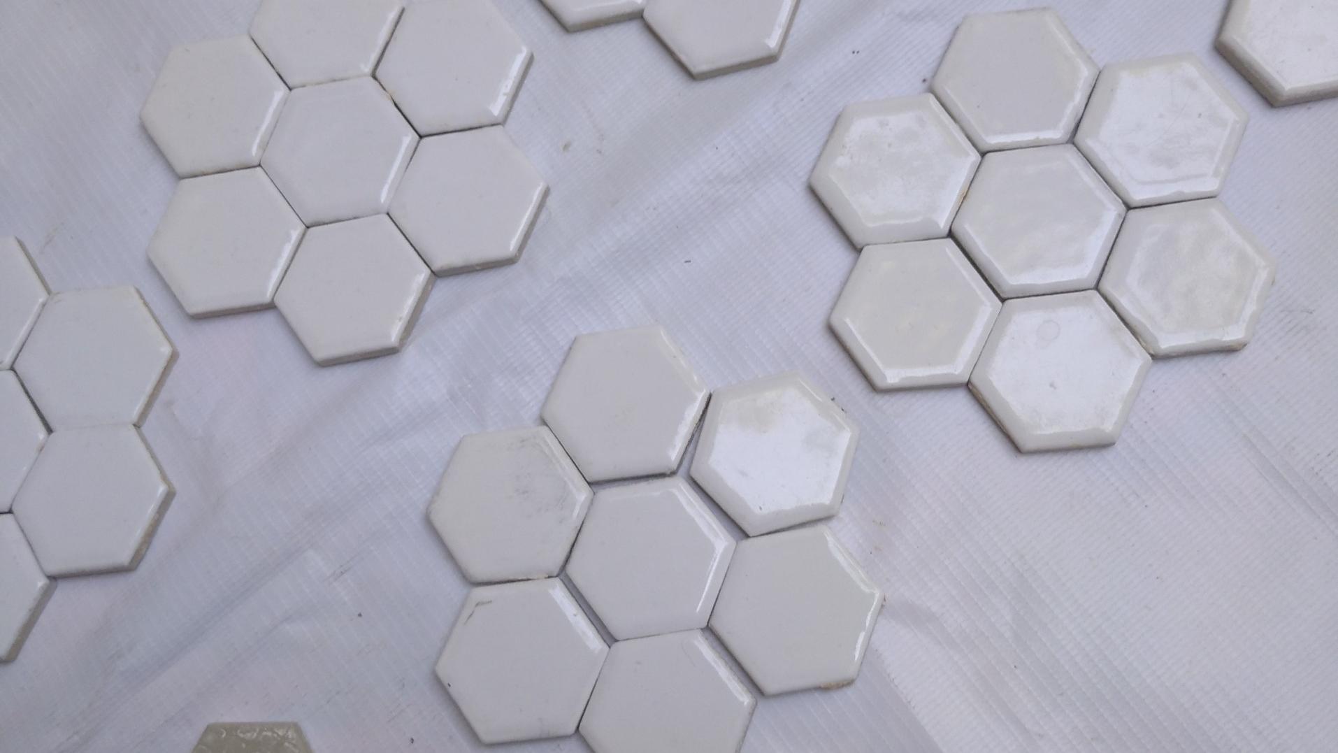 کاشی شش ضلعی استخری تعداد هربسته 70عدد میباشد فقط رنگ سفید موجود است هرچند بسته بخواد موجود است