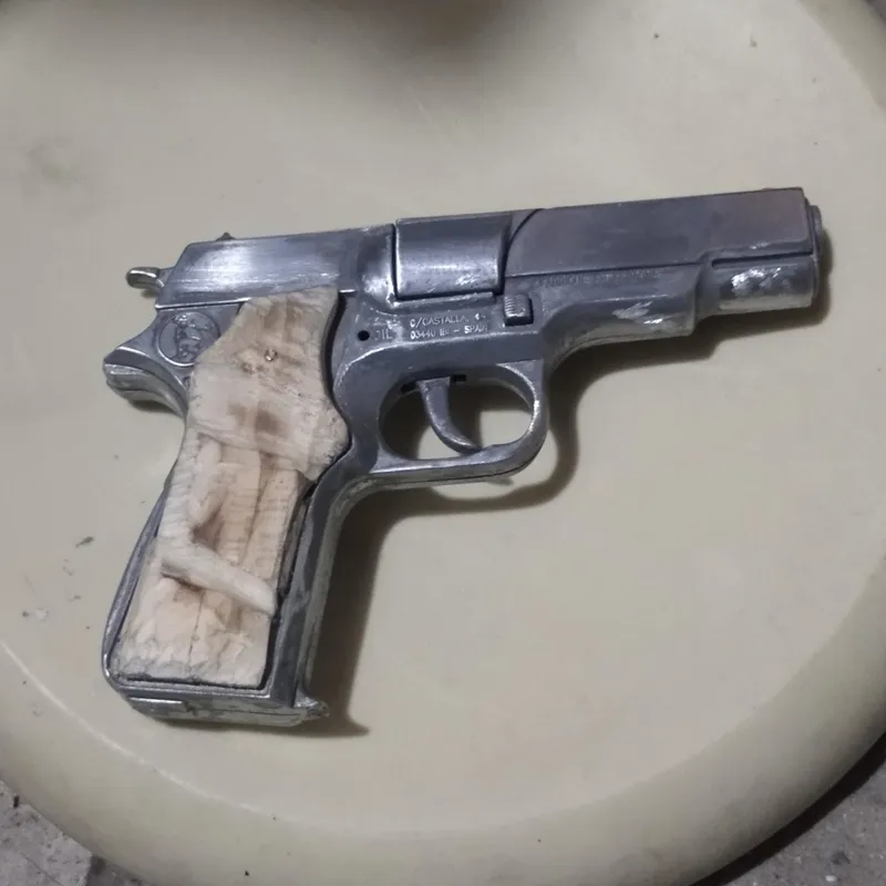 تفنگ ترقه ای تمام فلزی که قسمت چکش ضربه خراب شده کسی بتونه براش درست کنه که خوب من برای دکور استفاده میکردم