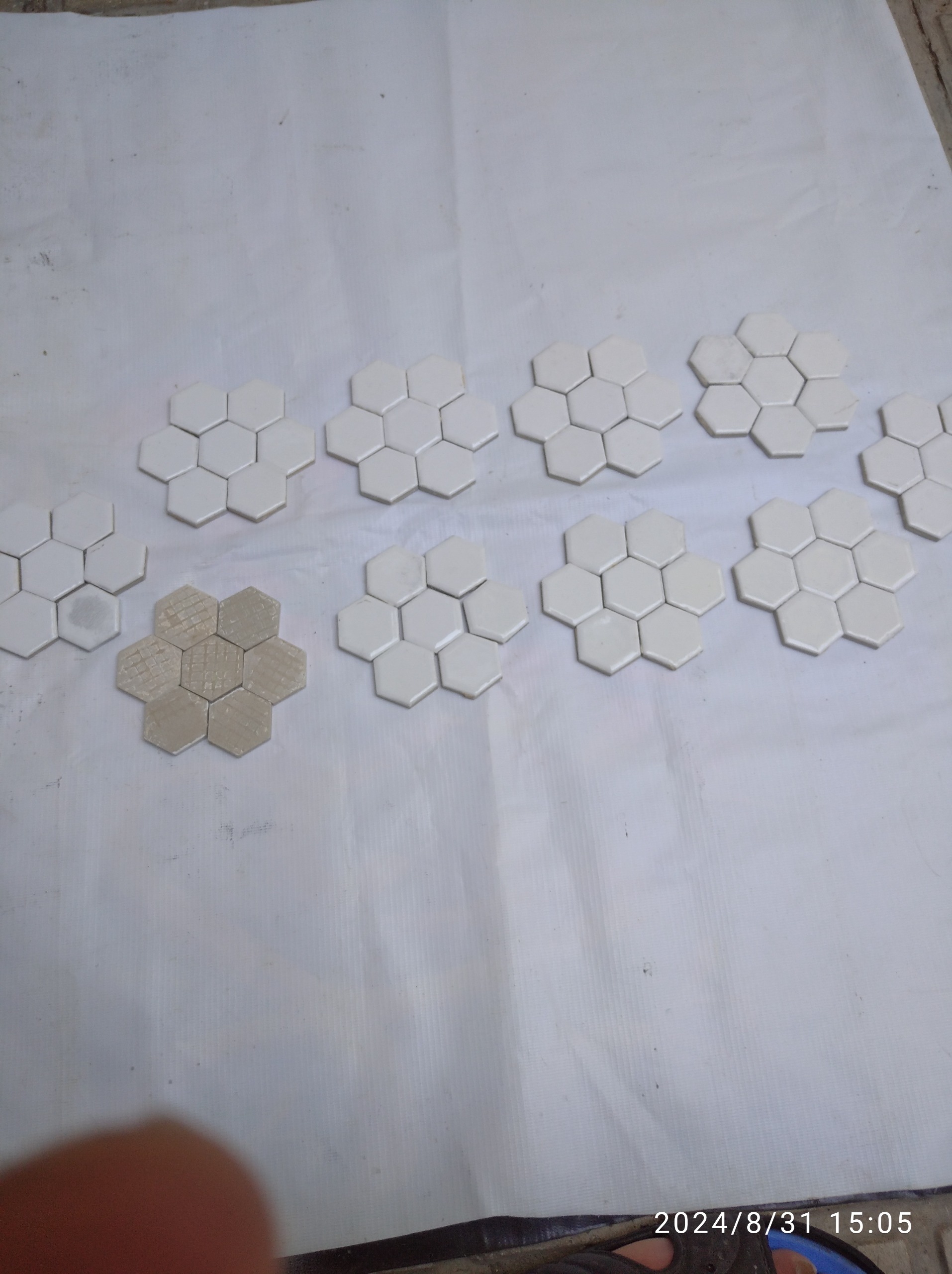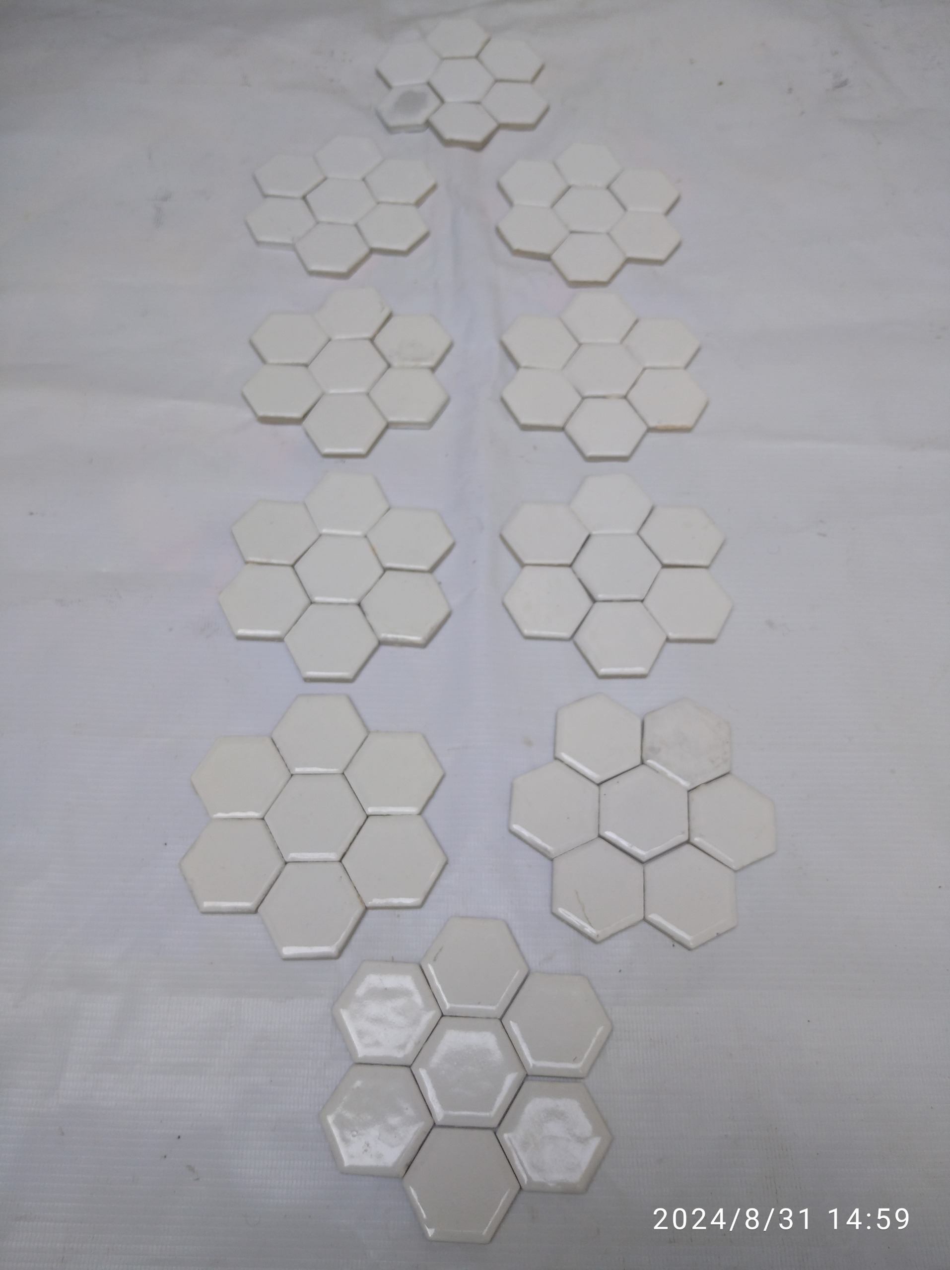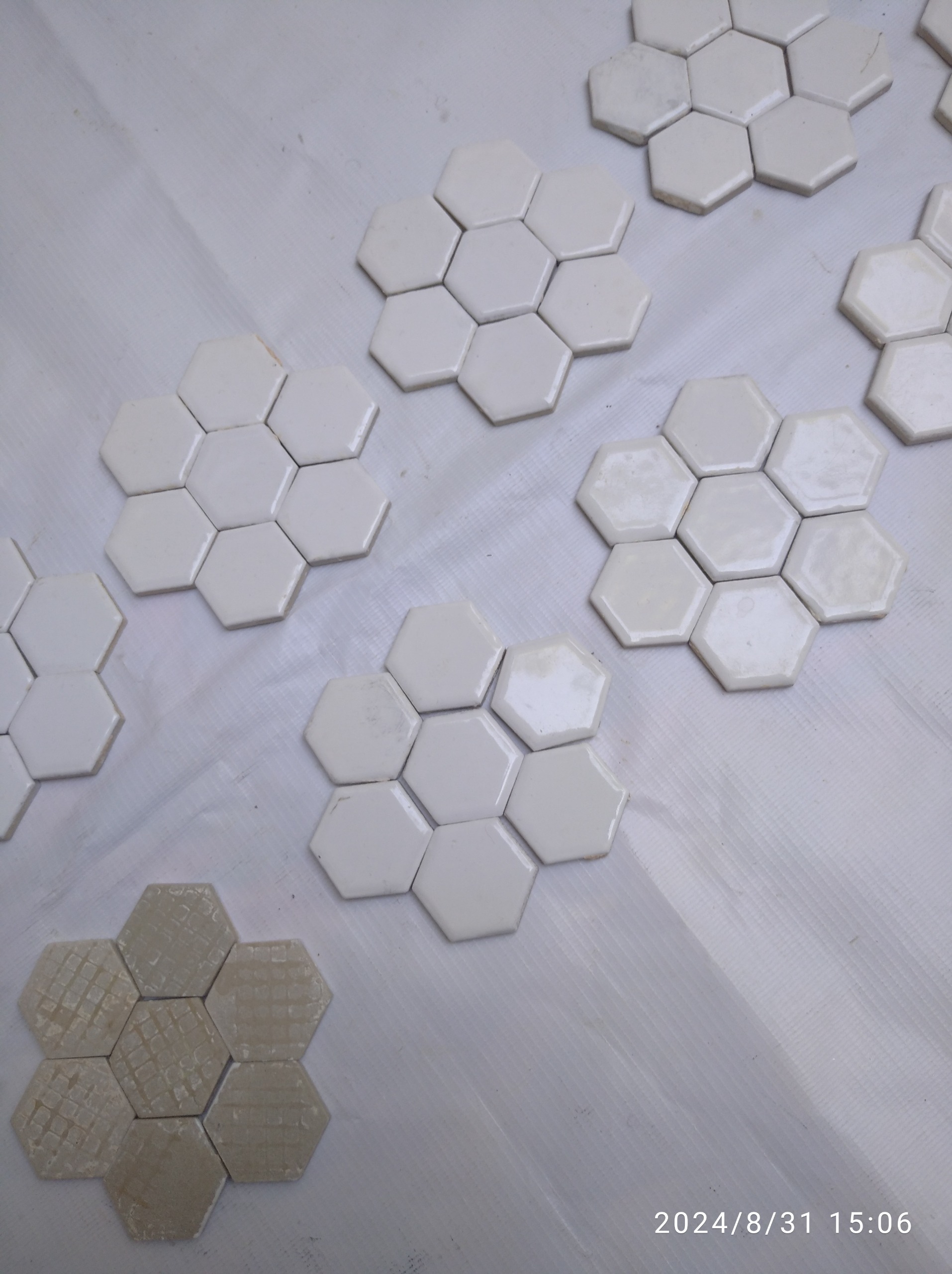 کاشی شش ضلعی استخری بسته 100تایی رنگ سفید ده بسته موجود است قیمت برای هربسته صدتایی است