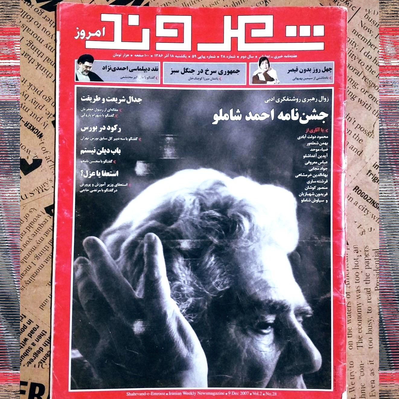مجله شهروند امروز حاوی صفحات ویژه زنده یاد احمد شاملو شاعر و ادیب صاحب سبک تاریخ معاصر
