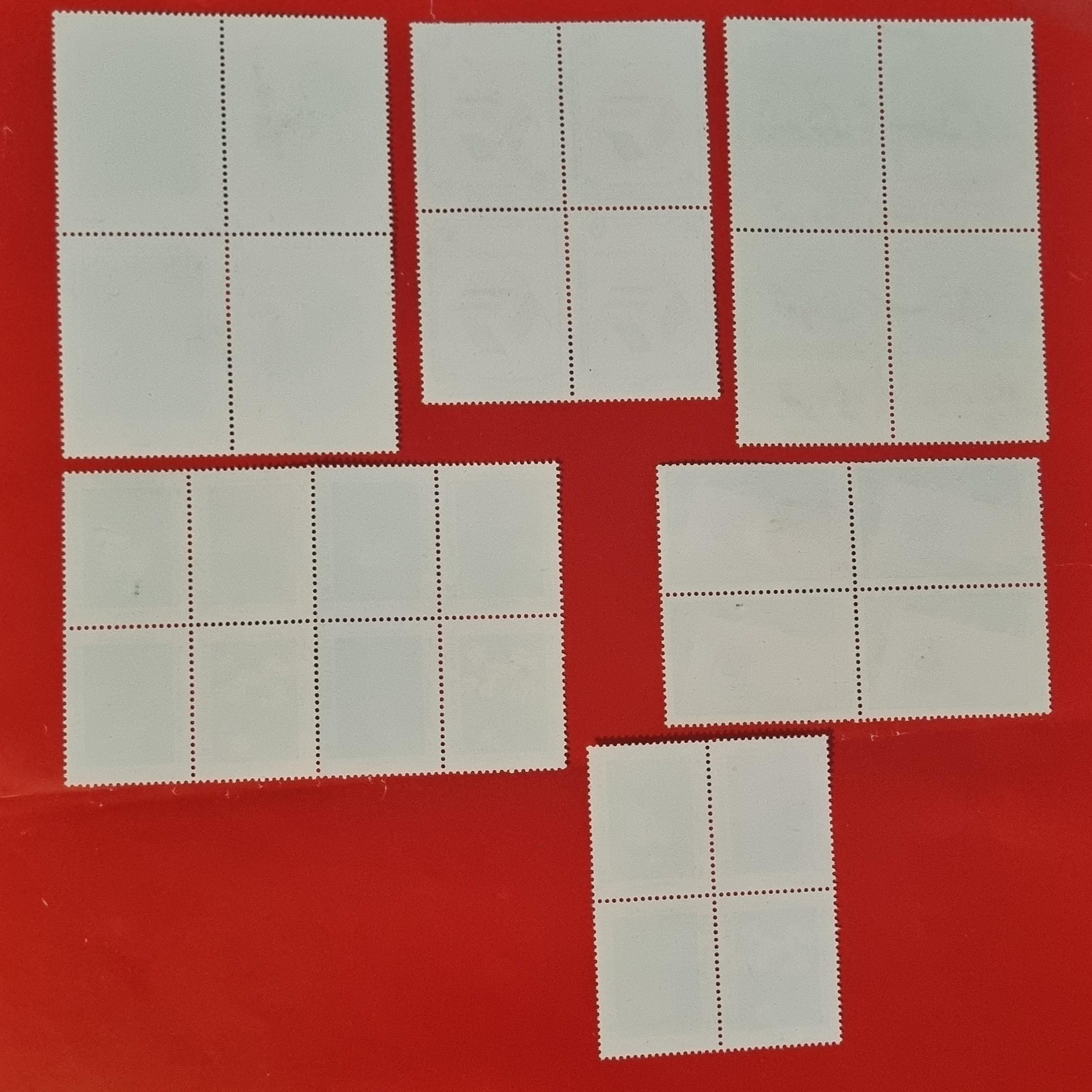 بلوک تمبر شامل یازدهمین سالگرد استقرار جمهوری اسلامی ایران (سال 1369)، سازمان همکاری های اقتصادی (سال 1370)، روز جهانی صنایع دستی (سال 1369)، روز جهانی پست (سال 1370)، نوروز (سال 1371)