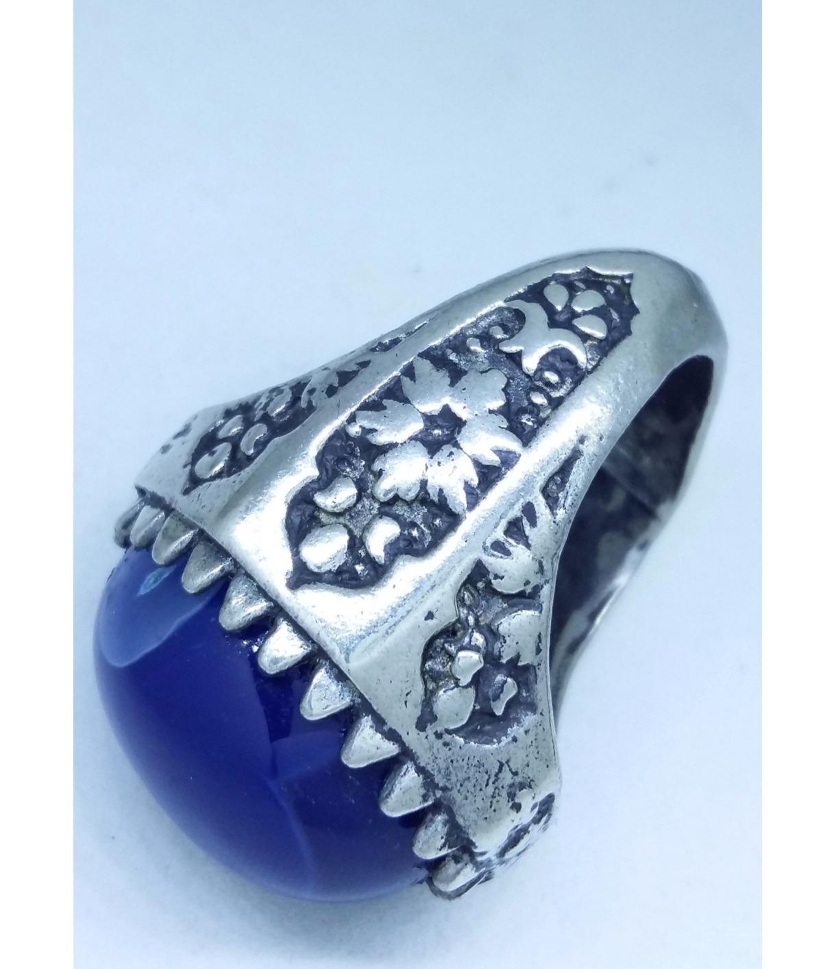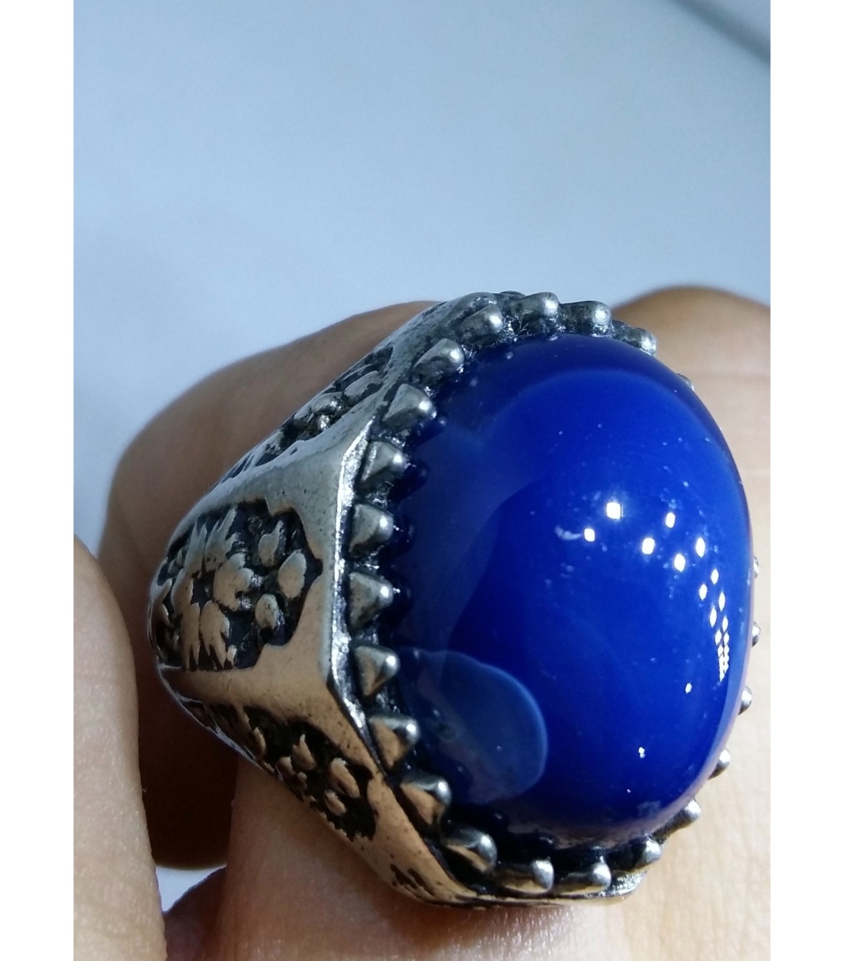 انگشتر با رکاب نقره طرح گل سلطنتی یه رکاب خاص با نگین عقیق اب دار به رنگ آبی خاص
