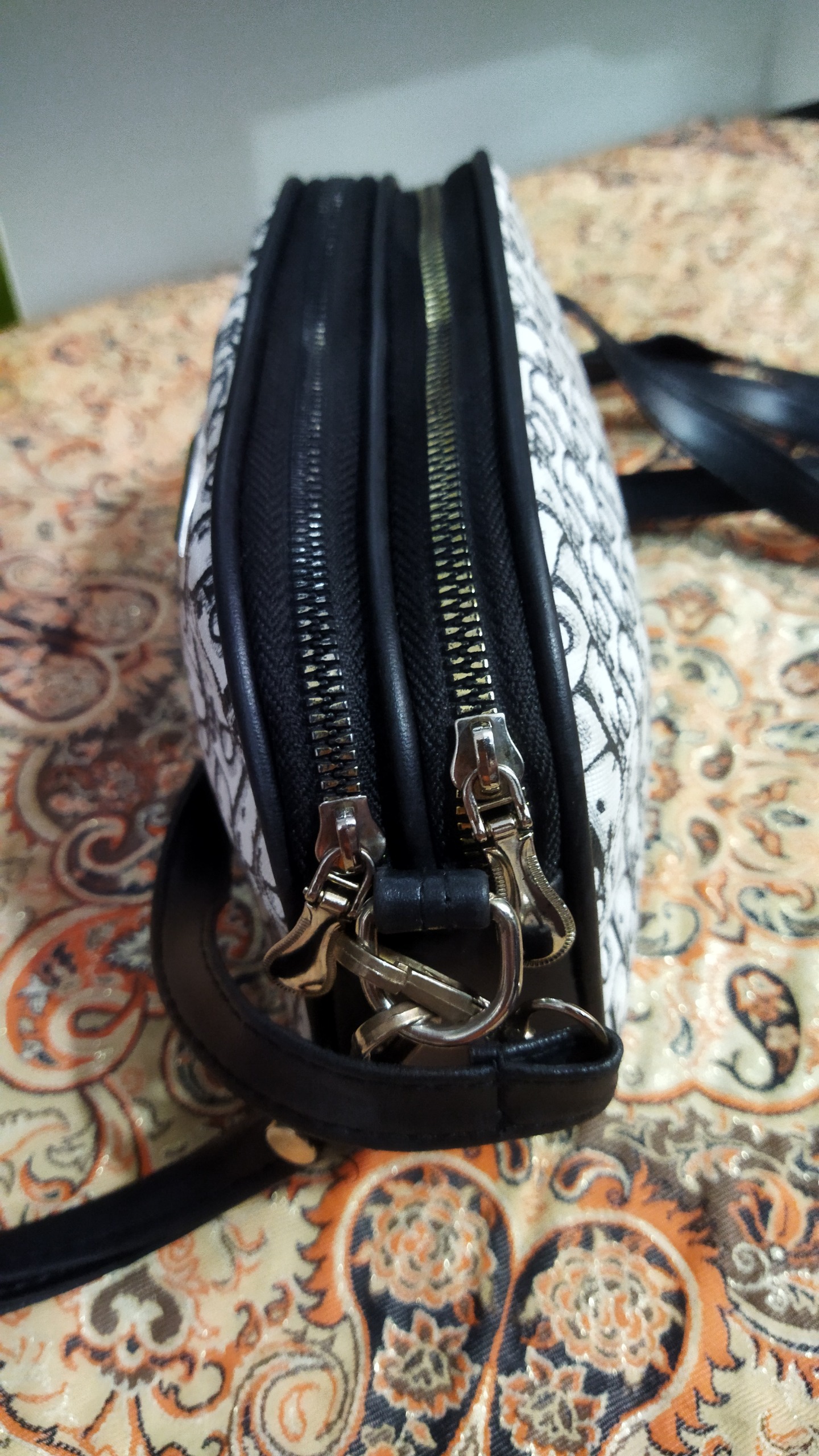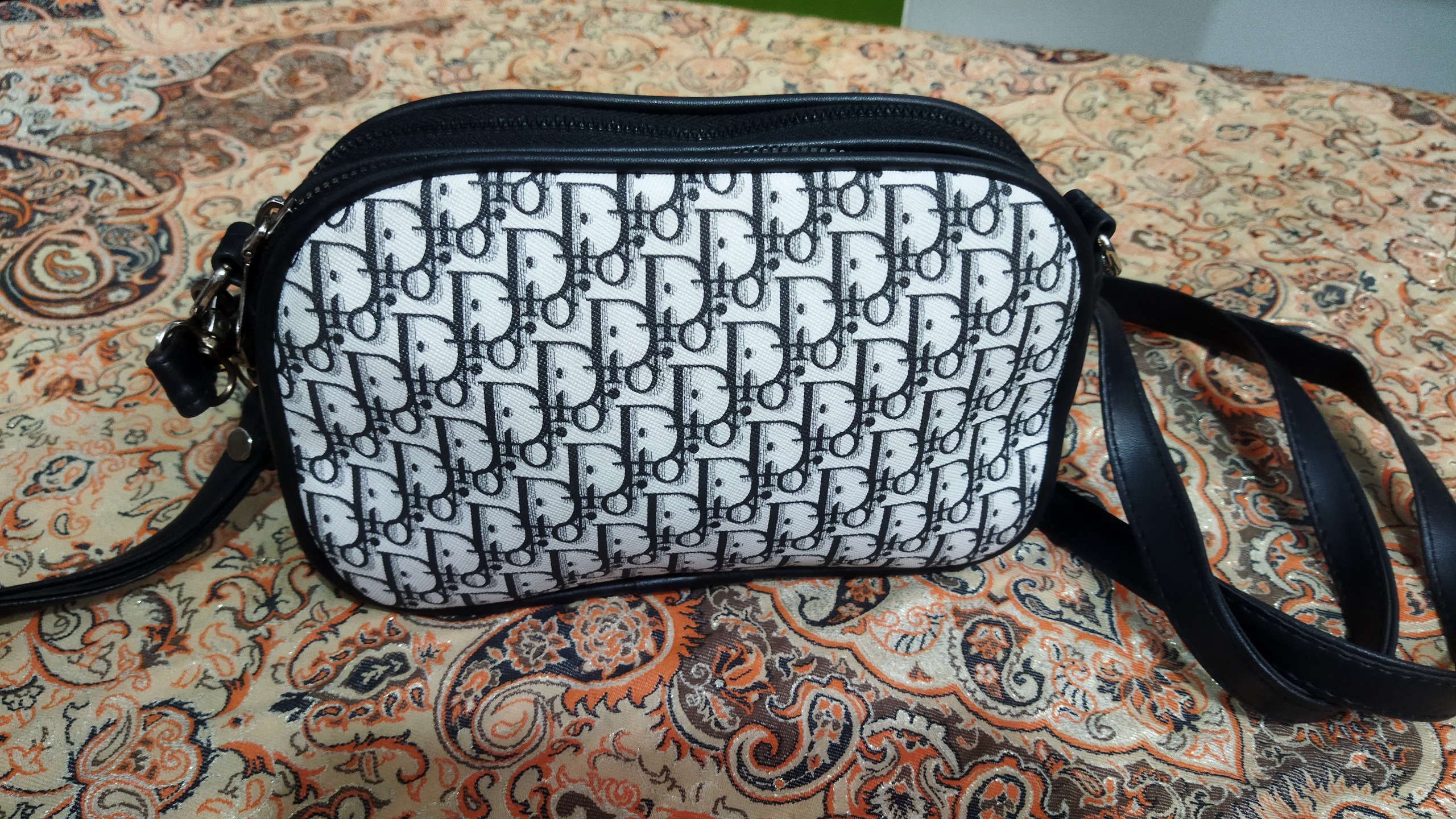 کیف دوشی رنگ سفید مشکی با بند بلند،جنس خوب