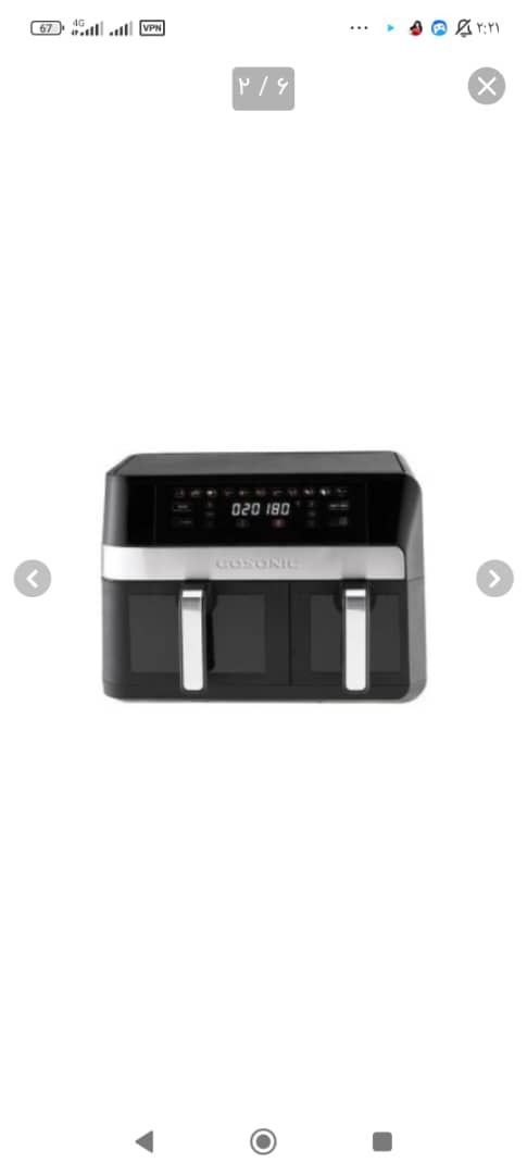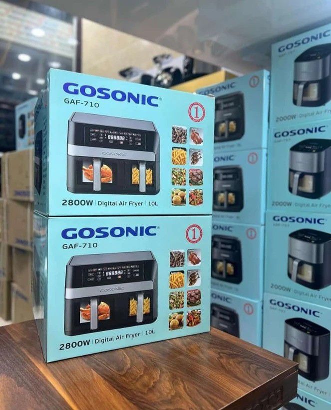 توان مصرفی 2800 وات، گنجایش 10 لیتر (یک مخزن 6 لیتر و یک مخزن 4 لیتر)، دارای برنامه های پخت متنوع شامل: سیب زمینی سرخ کرده، استیک، تخم مرغ، میگو، سبزیجات، ماهی، گرم کردن و.، دارای دو مخزن با تنظیمات متفاوت جهت پخت مواد غذایی متنوع، مخزن بزرگ شش لیتری که این امکان را برای شما فراهم میکند که یک مرغ کاملا درسته را پخت کنید، ظرف جداشو و قابل شستشو، طراحی جدید مخزن ها که در حین پخت و پز میتوانید مراحل پخت مواد غذایی را مشاهده کنید، دارای لامپ داخلی، یکی از برترین ویژگی این مدل نسبت به سایر مدل های دوقلو برند گوسونیک این است که فضای داخلی قرار گیری سبد در این مدل از جنس گالوانیزه است
