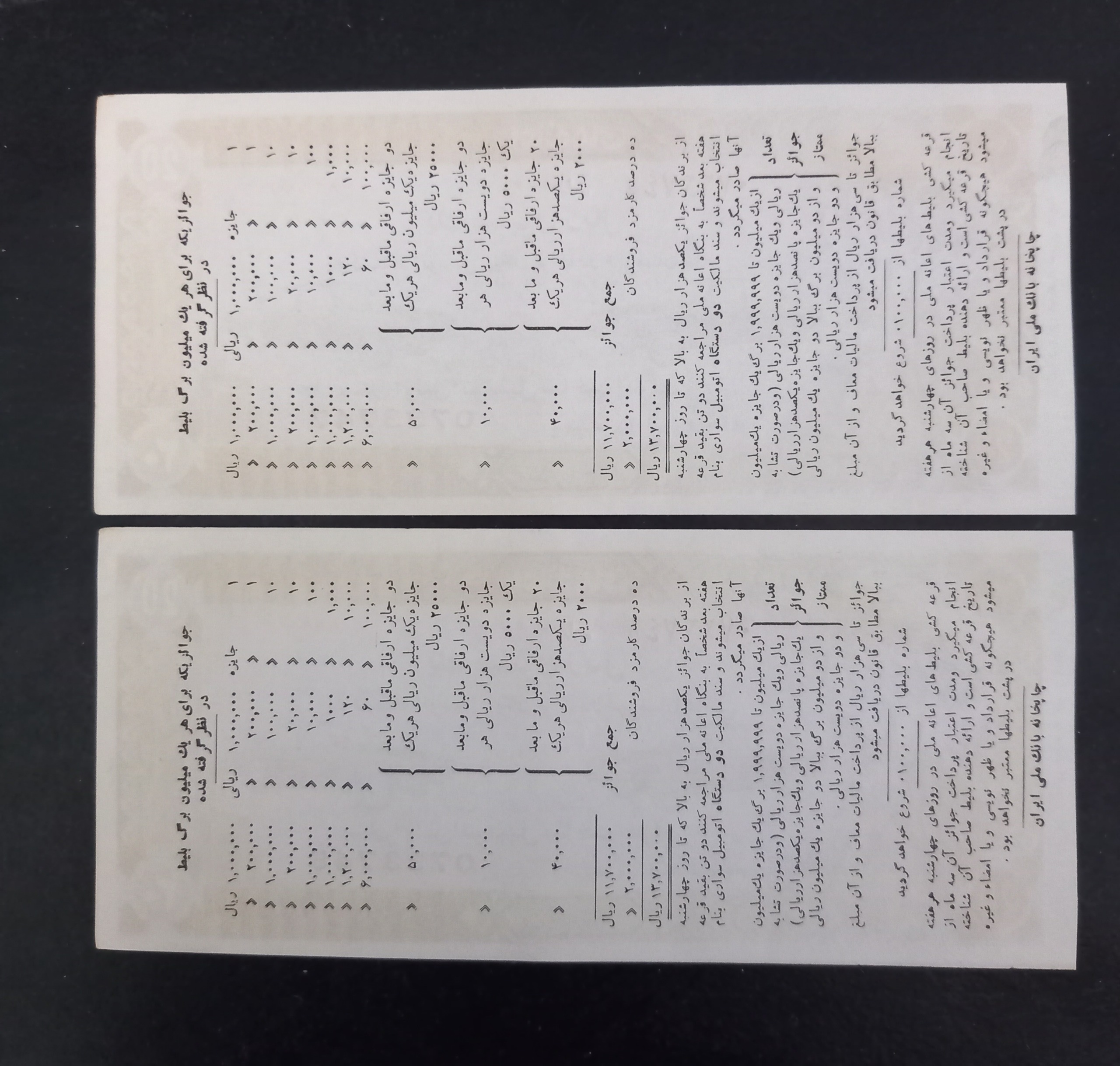 جفت بلیط 20 ریال بخت آزمایی بسیار کمیاب به صورت جفت واستفاده نشده