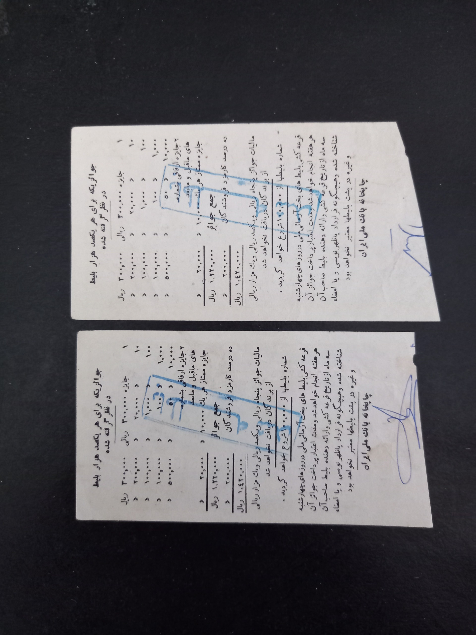 دو عدد بلیط بخت آزمایی دهه 30 بسیار کمیاب و ارزشمند و کلکسیونی