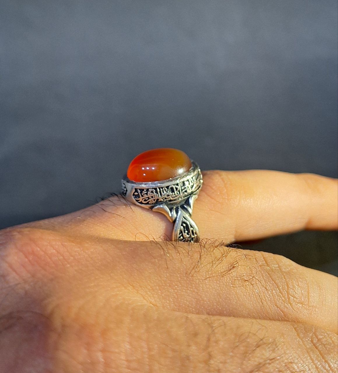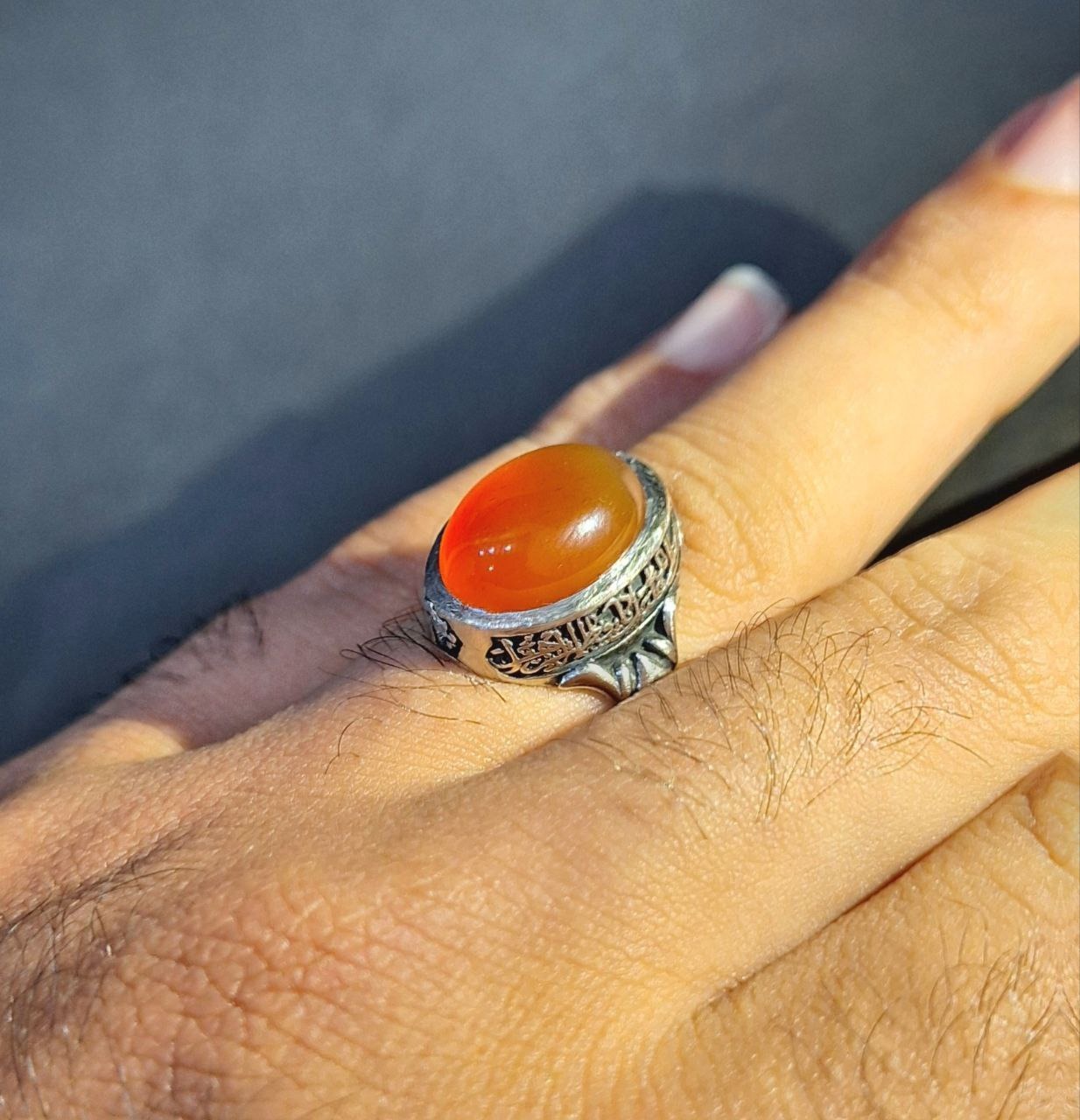 انگشتر عقیق زیباو با رکاب خاص نقره عیار840ولی زیر رکاب 925هست