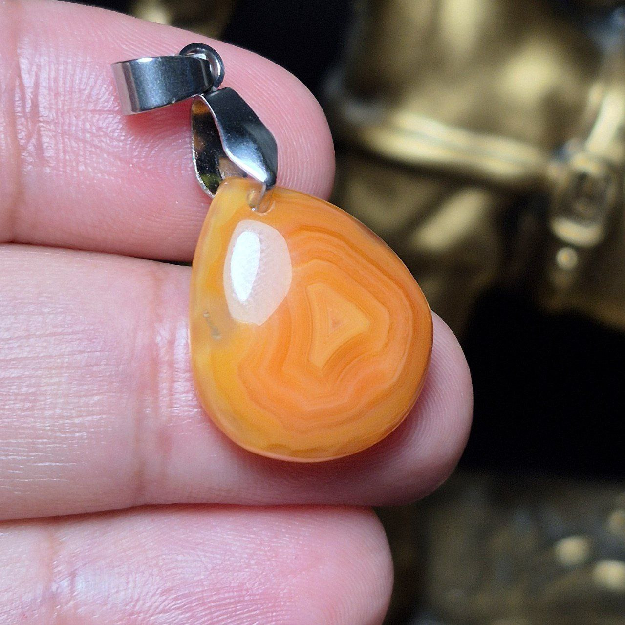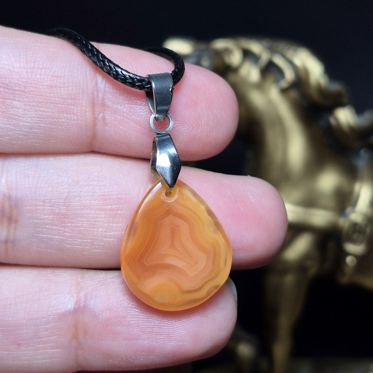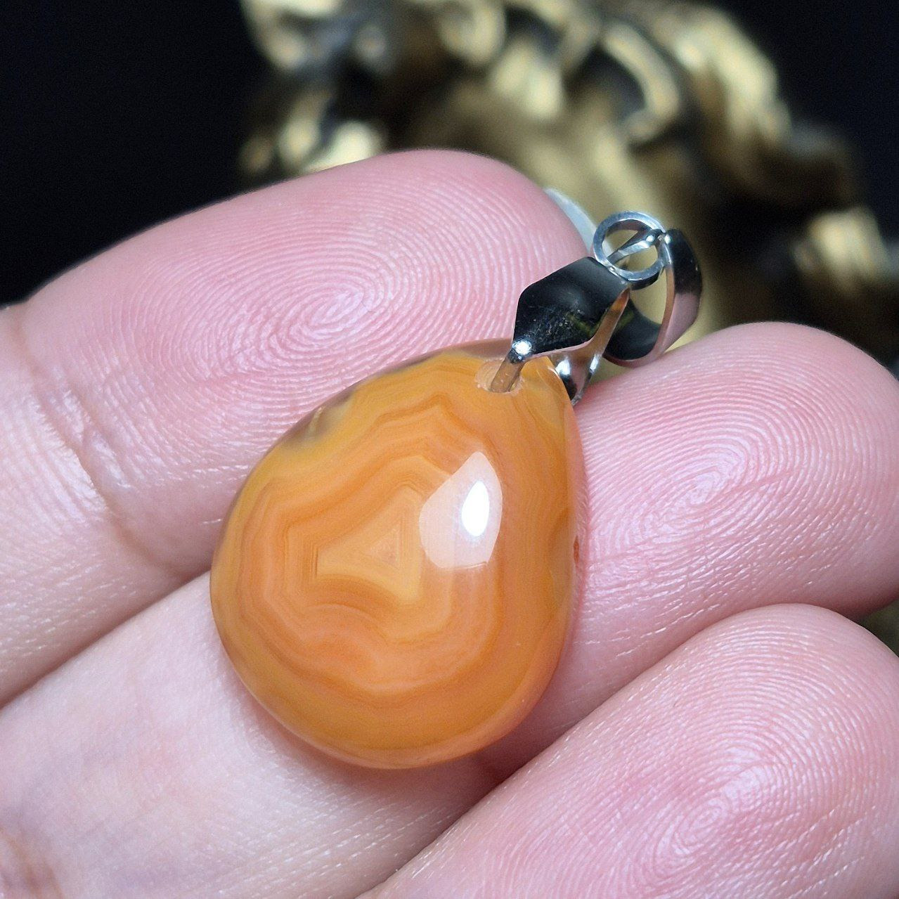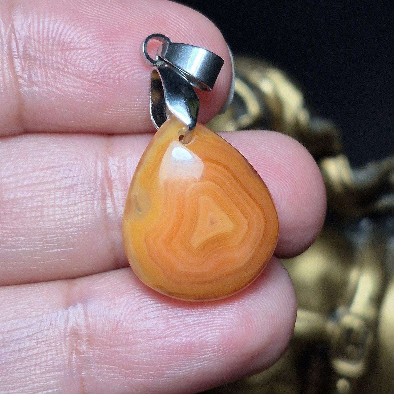 آویز گردنبند سنگ عقیق سلیمانی عسلی معدنی کد Z7111