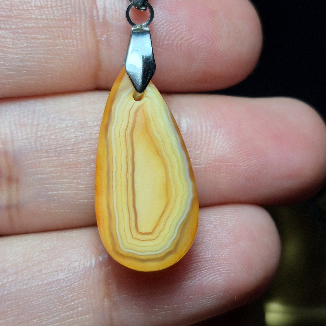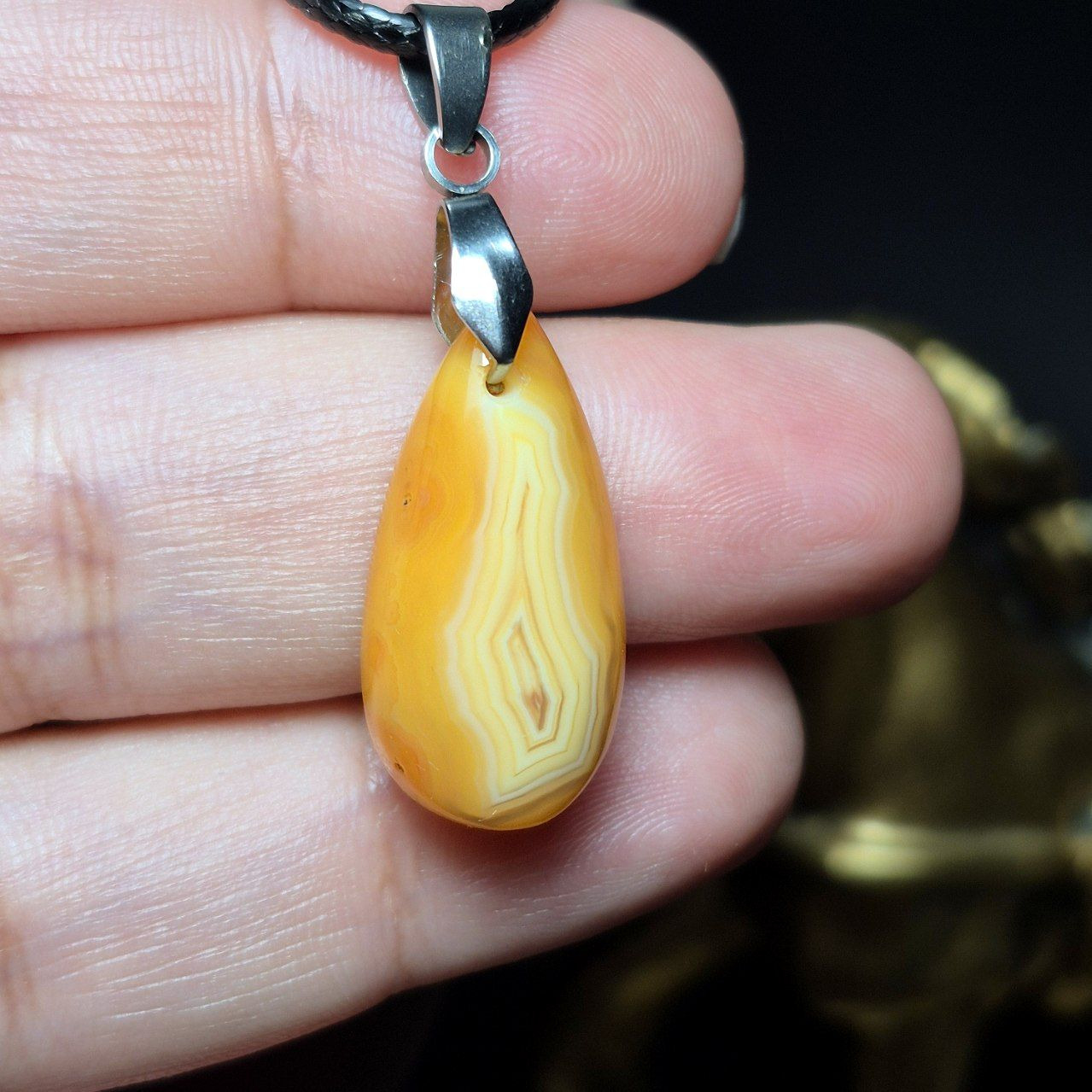 آویز گردنبند سنگ عقیق سلیمانی عسلی معدنی