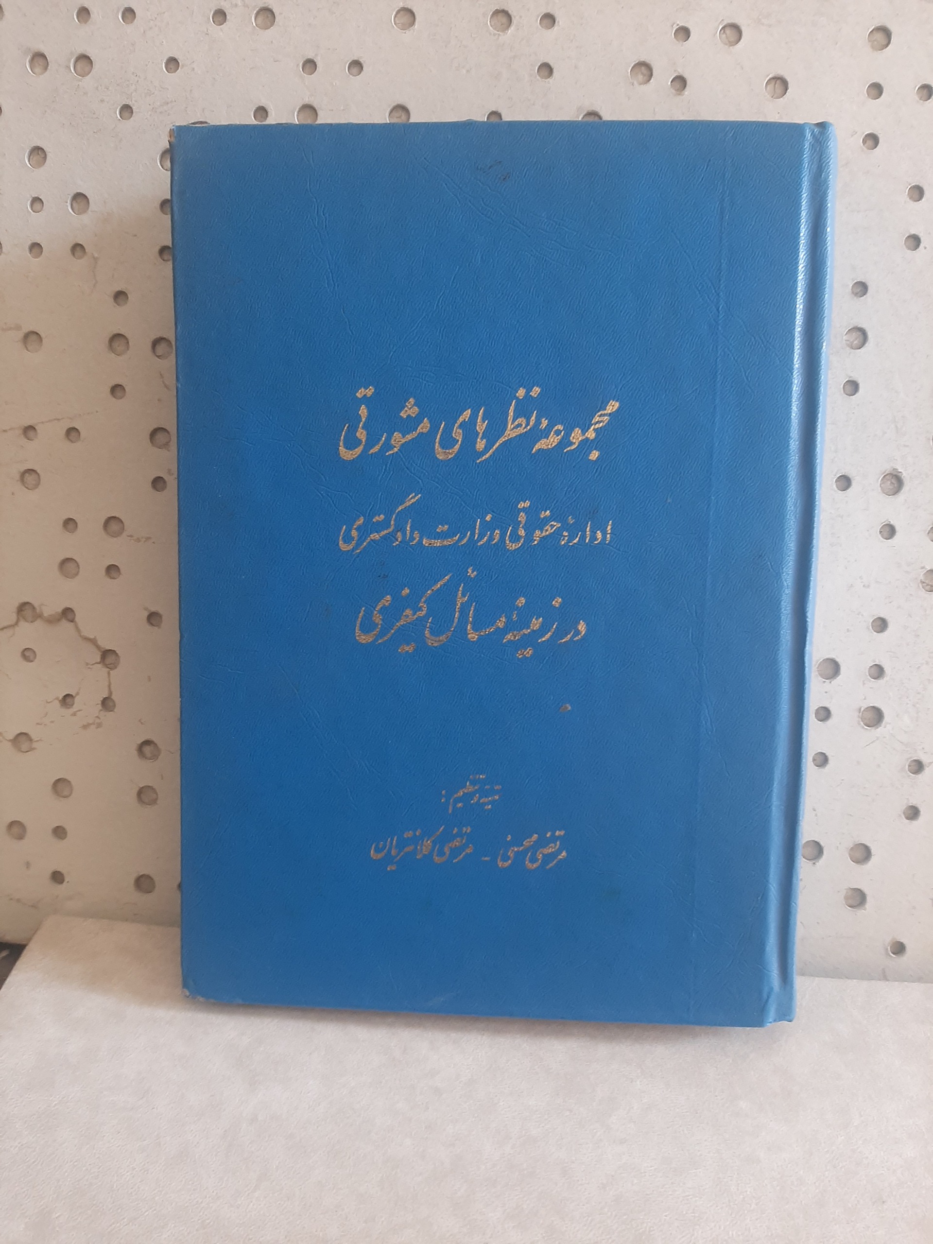 مجموعه نظرهای مشورتی دادگستری در مسائل کیفری - نویسندگان : محسنی ٬ کلانتریان - نشر وزارت دادگستری - بدون درج تاریخ چاپ به نقل از مقدمه کتاب احتمالا چاپ سال 1342 ش - وزیری - گالینگور - 687 ص