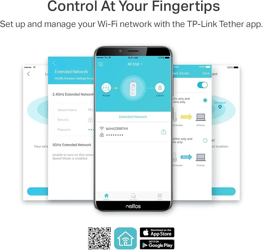وای فای خود را به راحتی و در چند مرحله سریع و آسان با استفاده از برنامه TP-Link Tether (اندروید، iOS) راهاندازی و مدیریت کنید. با نشانگر هوشمند سیگنال، مکان بهینه برای بهترین اتصال وای فای را پیدا کنید.