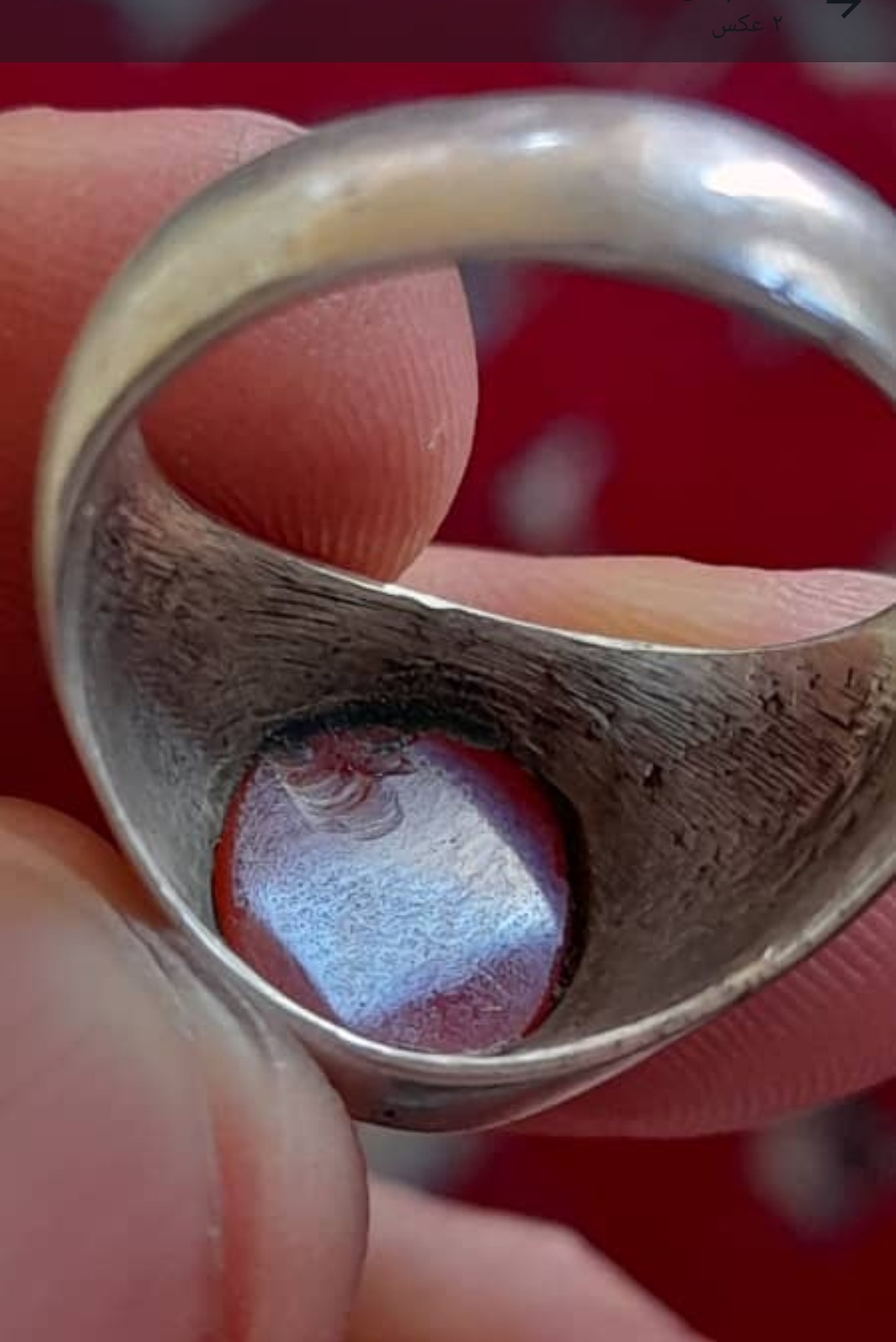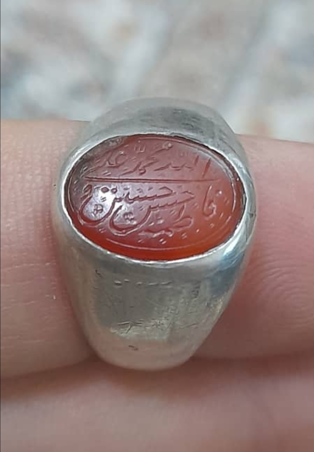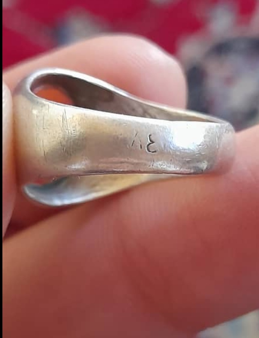 انگشترعقیق یمن خط کمونچه 5 تن قاجاری رکاب دستساز وفابریک عیار84 پشت سنگ یه پریدگی جزئی دارد