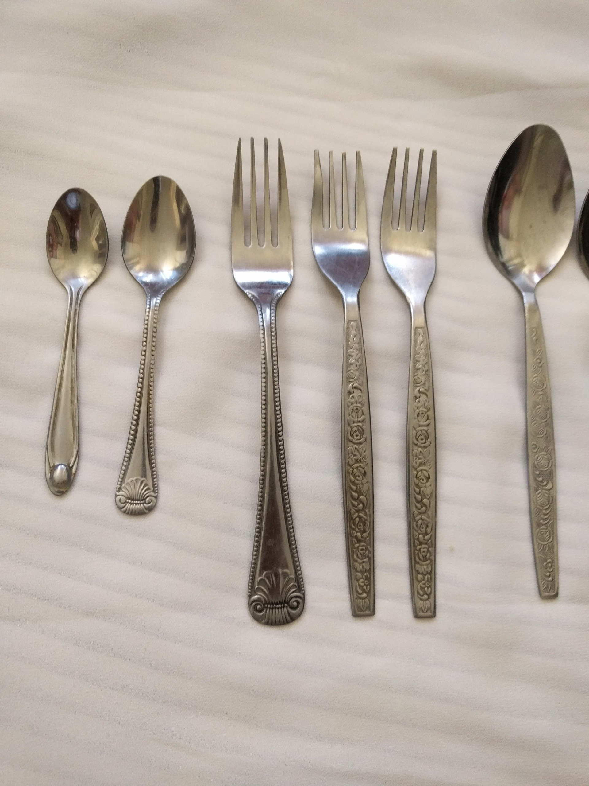 8 عدد قاشق چنگال استیل قدیمی ژاپنی با طرح های مختلف مطابق عکس :