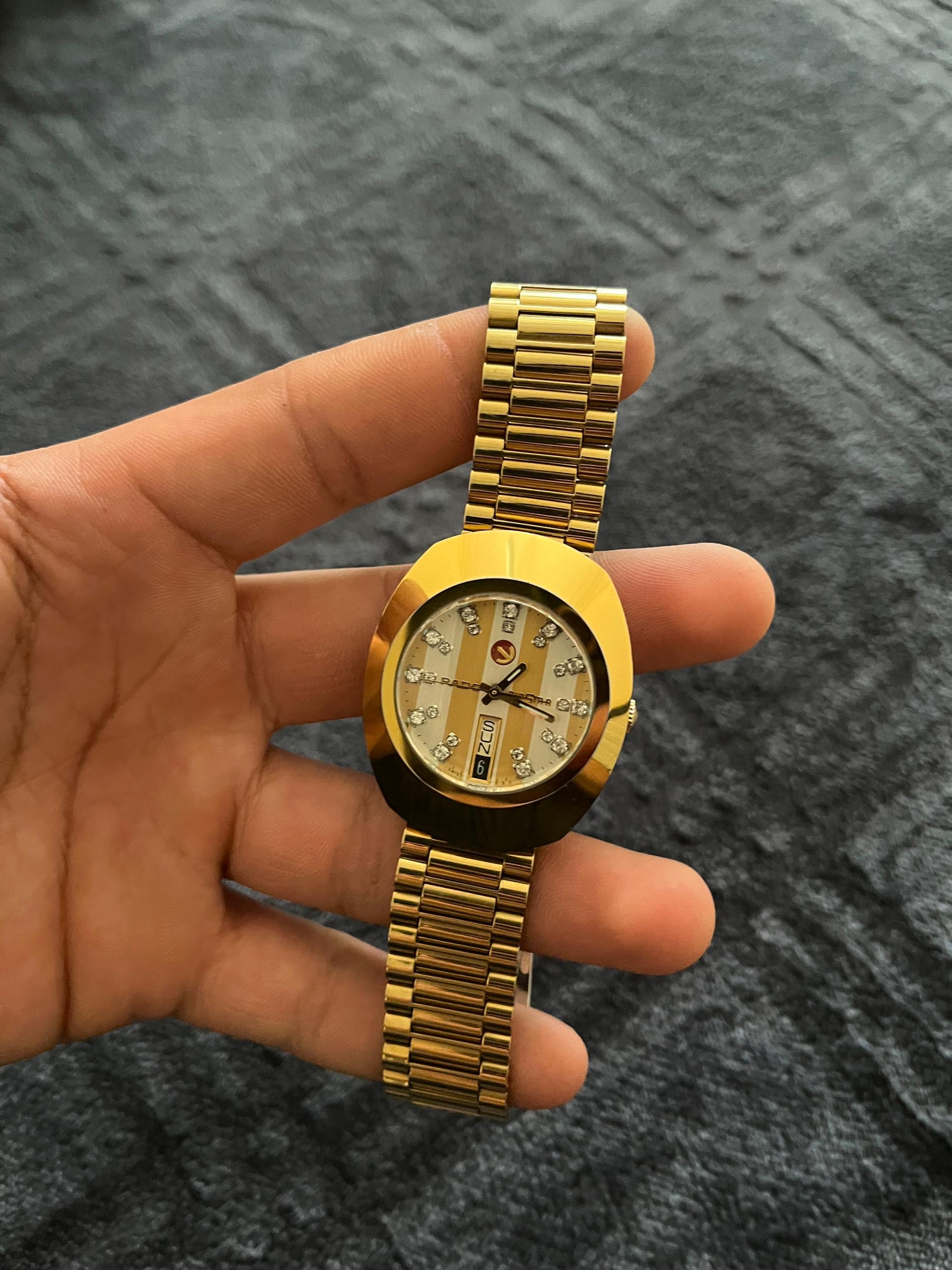 ساعت رادو اورجینال 22 برلیان بسیار سالم و صحیح بند اورجینال نیست جعبه نداره به شرط کار موتور درجه یک بسیار دقیق ساعت خیلی زیباتر است تصاویر است