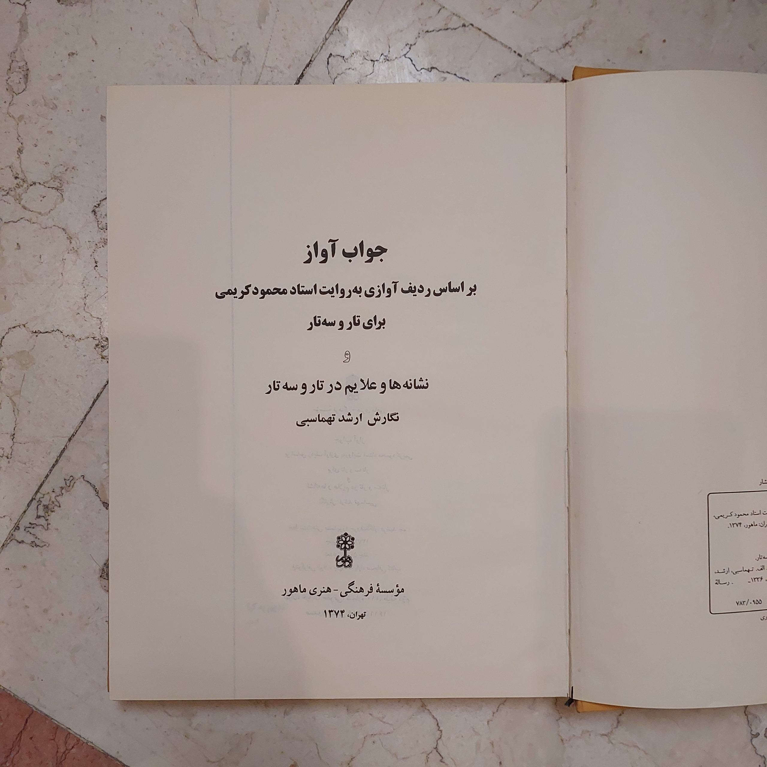 در این کتاب تکنیکهای جواب آواز در موسیقی ایرانی به روایت استاد محمود کریمی بررسی و نتنویسی و با تار ارشد طهماسبی اجرا شده است.