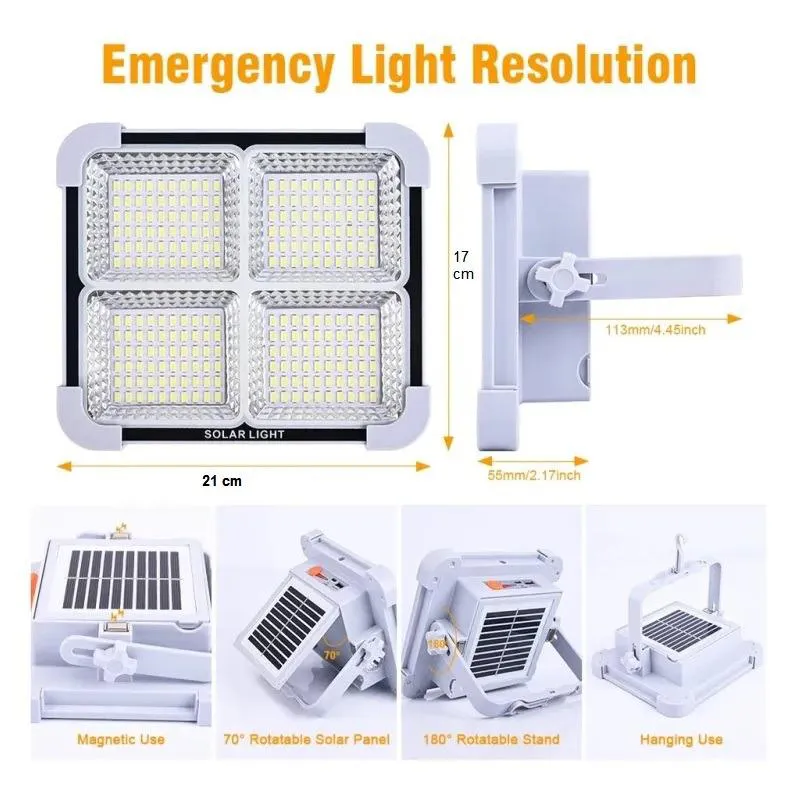 مشخصات پروژکتور شارژی خورشیدی (شش باتری) با پنل تاشو و چراغ قوه 100وات :