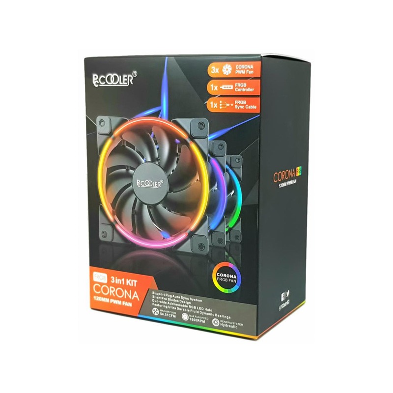 باکس (3 عدد فن FRGB بهمراه هاب و تمامی کابل های مورد نیاز، امکان اضافه کردن 3 فن دیگر بر روی هاب) دارای ریموت کنترل