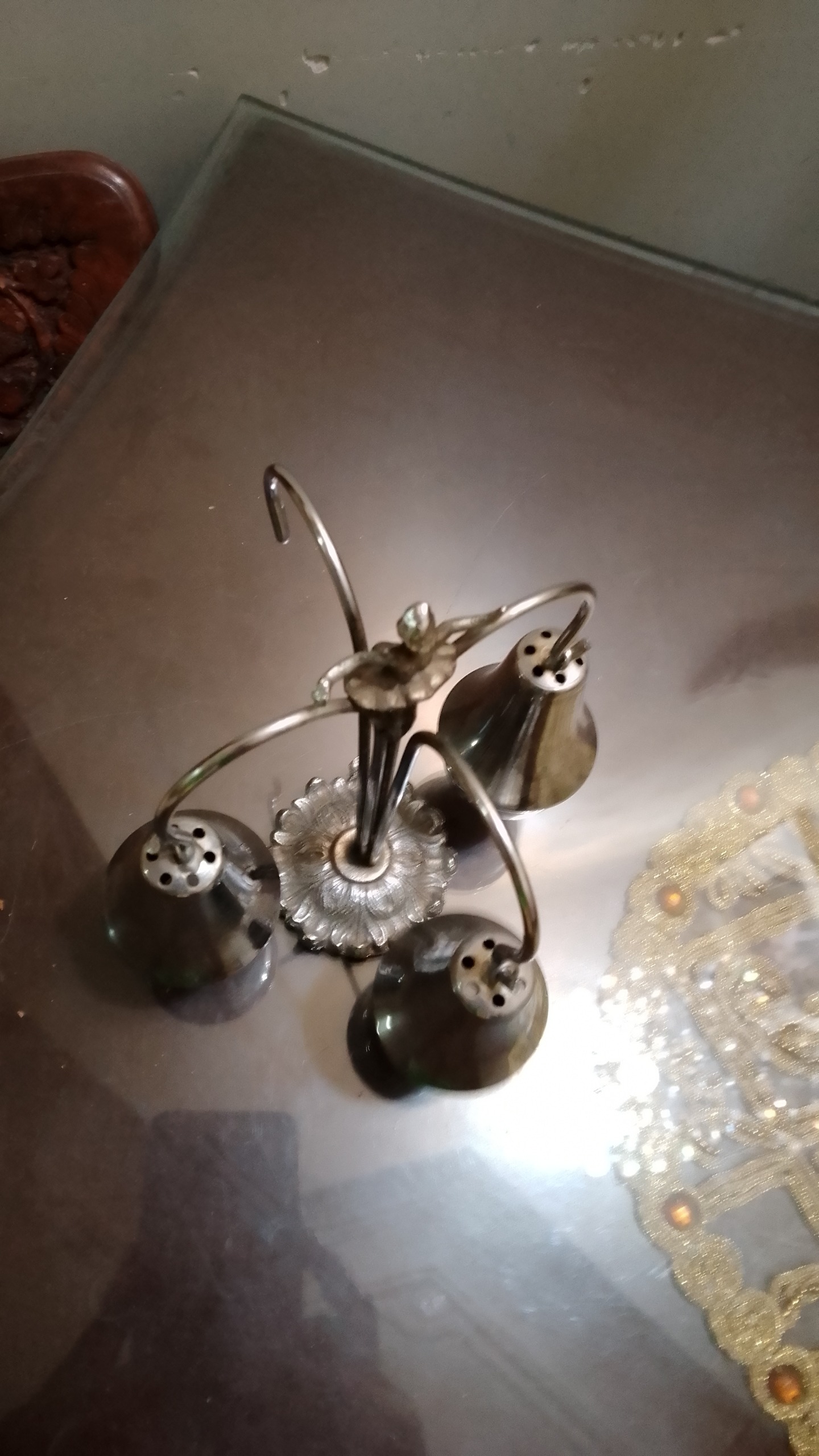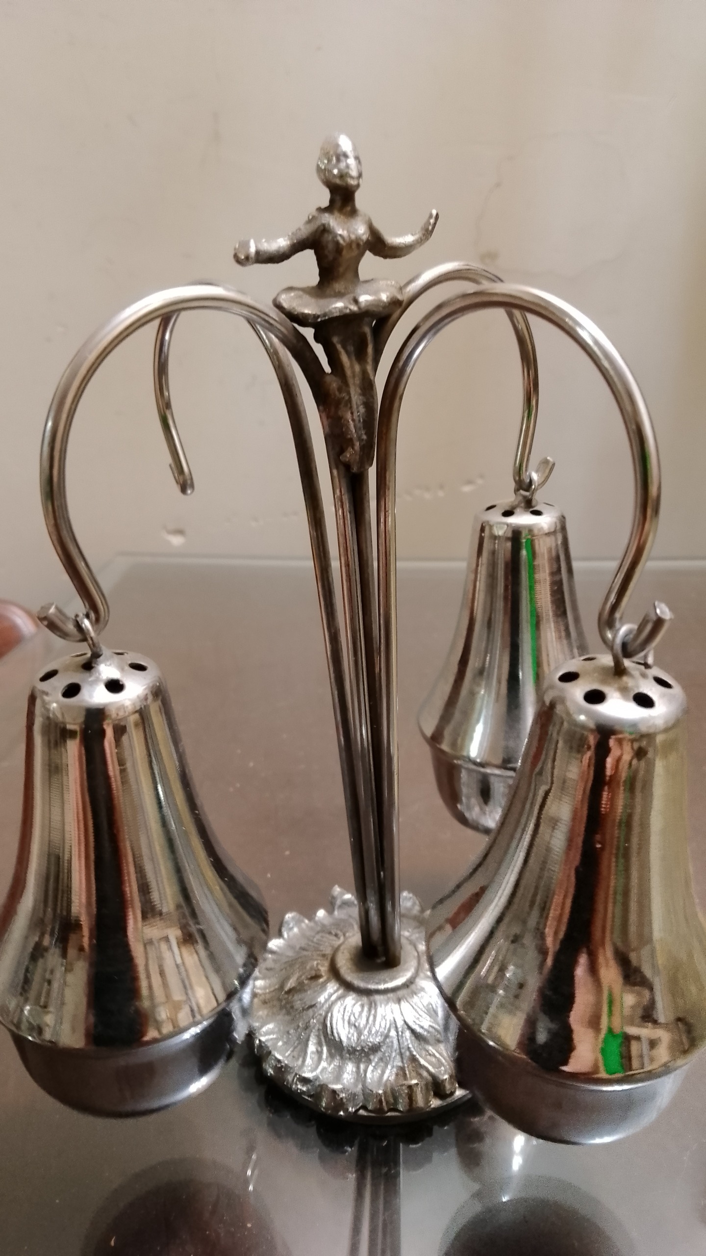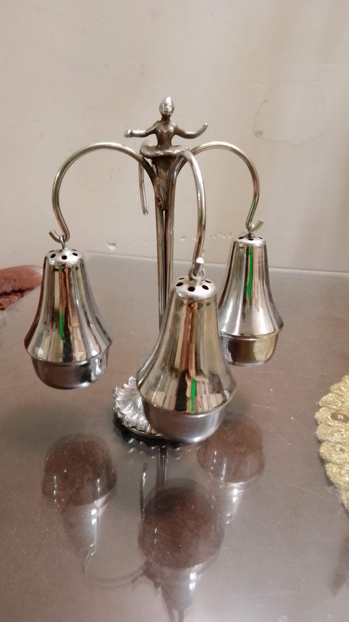 نمکدان پایه آویز برنجی رنگ سیلور فرشته قدیمی آنتیک