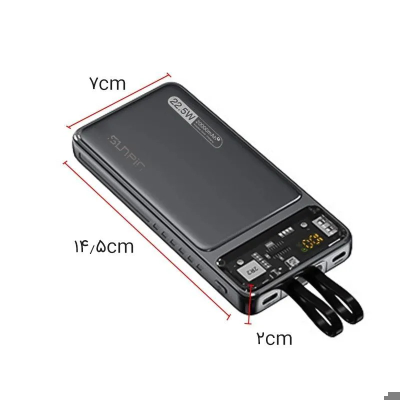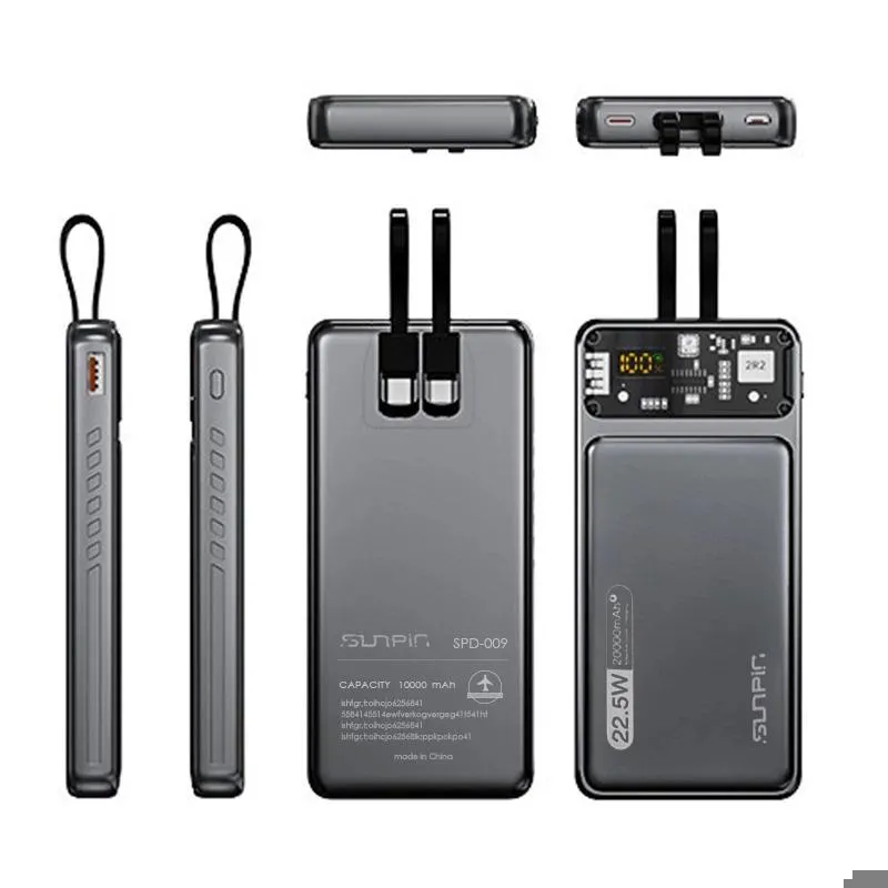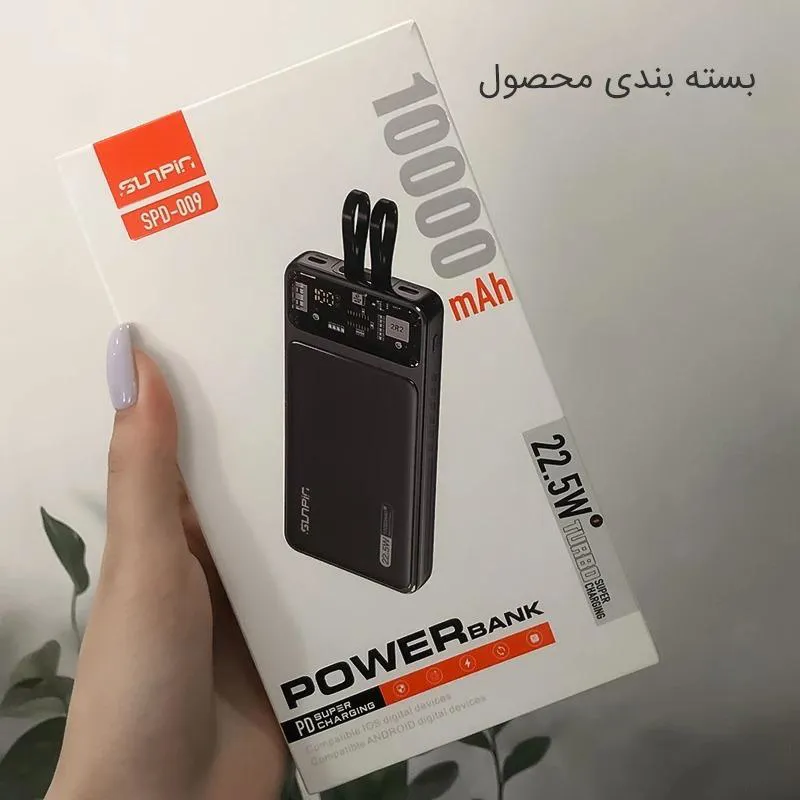 پاور بانک برند سان پین مدل SPD-009 با ظرفیت ده هزار میلی آمپر ساعت، یکی از پاوربانک های با کیفیت بازار شناخته می شود. از ویژگی های خاص این پاوربانک، می توان به داشتن قابلیت شارژ ایمن، شارژ PD، شارژ 22.5 وات و دو کابل