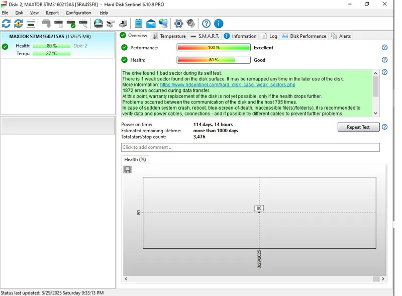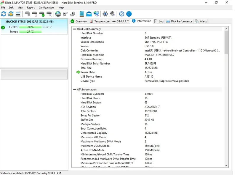 هارد 160 گیگ مکستور 80 درصد کد 177