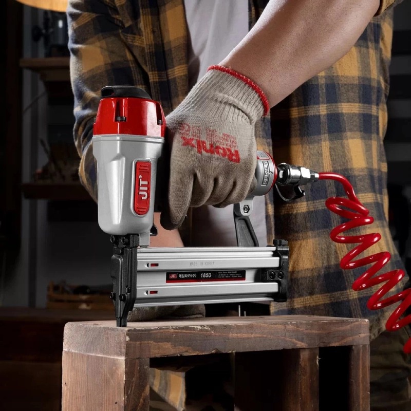 میخکوب اسکا 1850 جیت با خشاب آنادایزشده و گیج 18 برای میخ های 15 تا 50 میلی متری مناسب است. این میخکوب همراه با متعلقات ضروری ارائه می شود که شامل ظرف روغن برای کاهش استهلاک ابزار، کوپلینگ برای اتصال به شلنگ هوا، شلنگ 7.5 متری برای دسترسی آسان به مناطق کاری مختلف، آچار آلن برای تنظیم و تعمیر ابزار و قلاب برای نگهداری ابزار است.