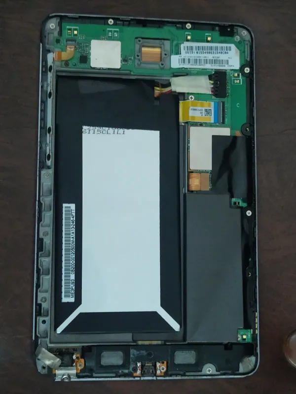 تبلت خاموش هست، از وضعیت تبلت خیلی اطلاعی ندارم، فقط تعمیرکار میگه تاچ و ال سیدی ش خرابه، اینکه باتری و بقیه بخش های تبلت سالم باشه یا نه اطلاعی ندارم، 2 تا از گوشه های تبلت ضربه خوردگی و شکستگی داره که داخل 2 عکس آخر مشخصه.