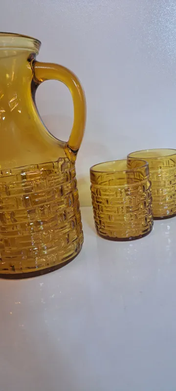 پارچ و لیوان ایتالیا عسلی بسیار قدیمی زیبا و اصلی