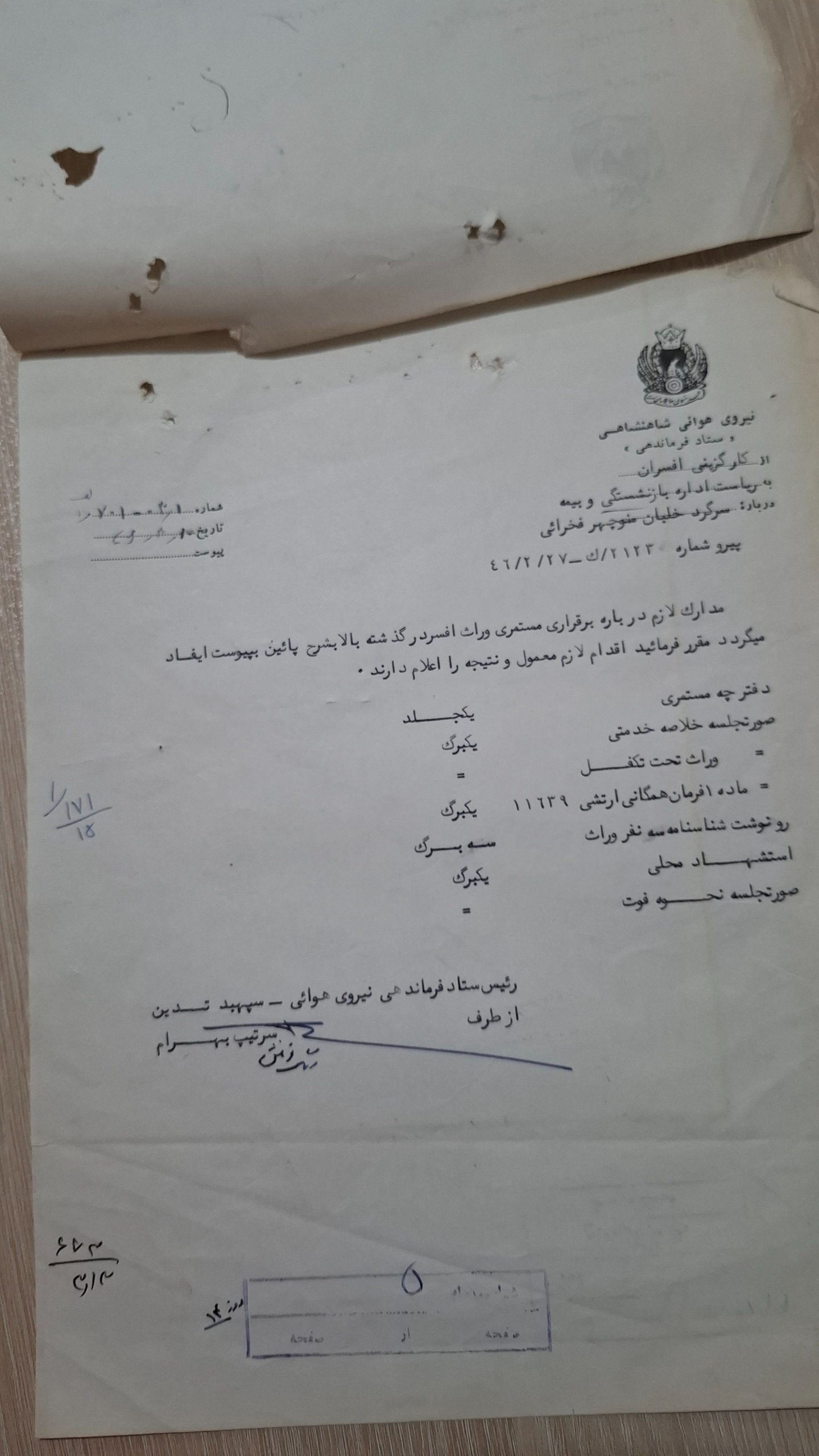 2 برگ نامه نیروی هوائی شاهنشاهی سال1346